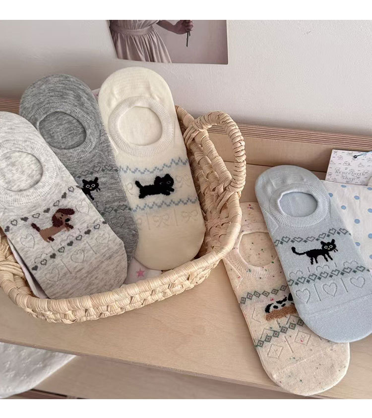 페어 아일랜드 요소 "만화 사랑 활 뼈없는 보트 양말 여성 얕은 입 얇은 귀여운 보이지 않는 면 양말