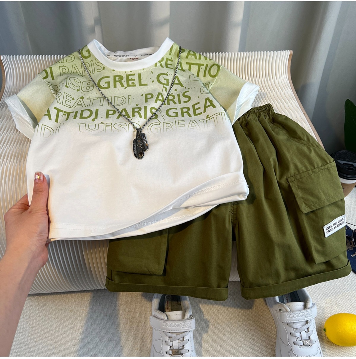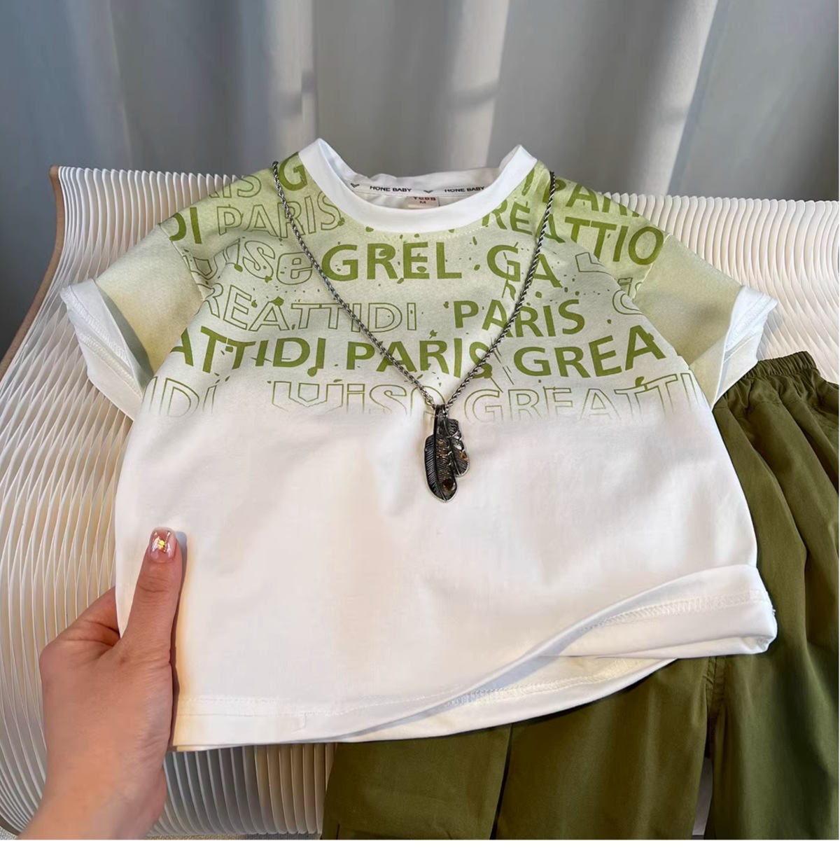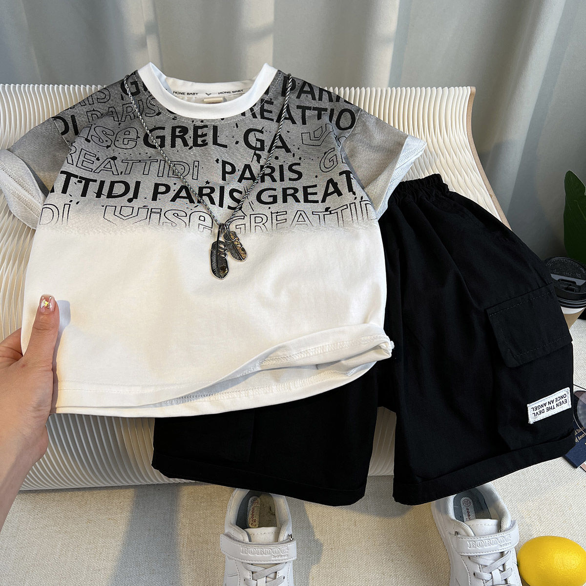 남자 아기 여름 옷 세트 2025 새로운 서양식 어린이 순면 반팔 투피스 세트 잘 생긴 소년의 여름 옷