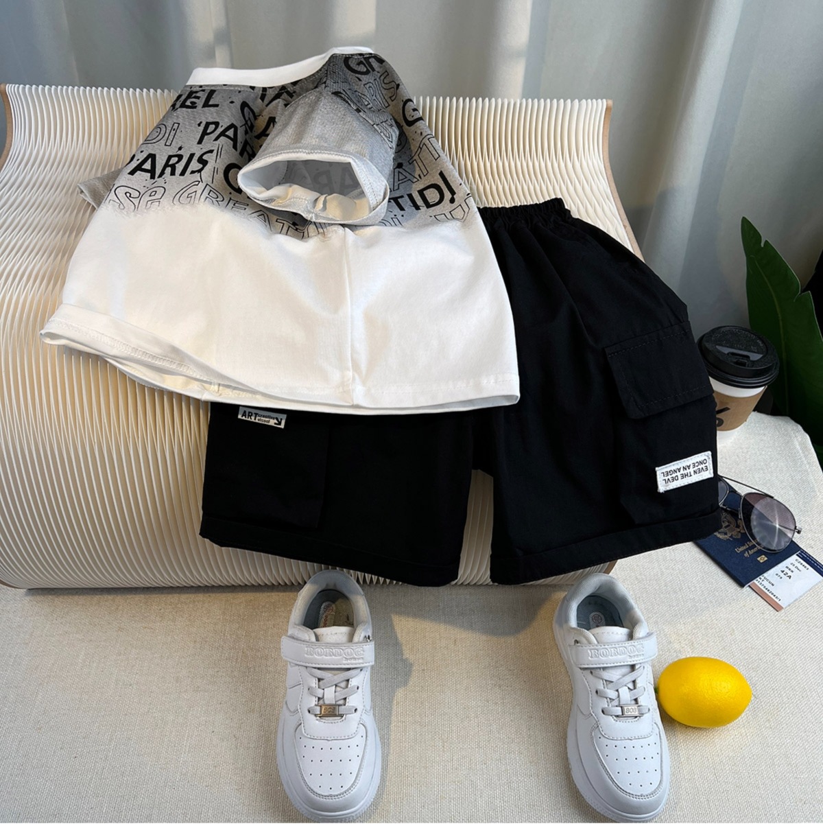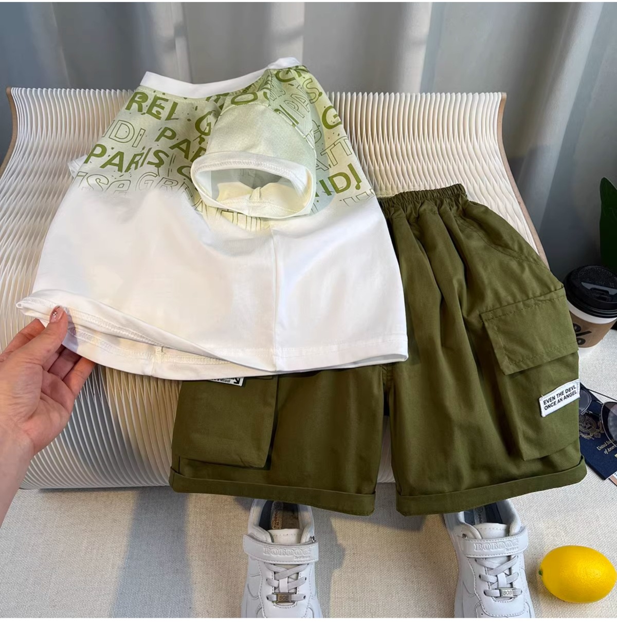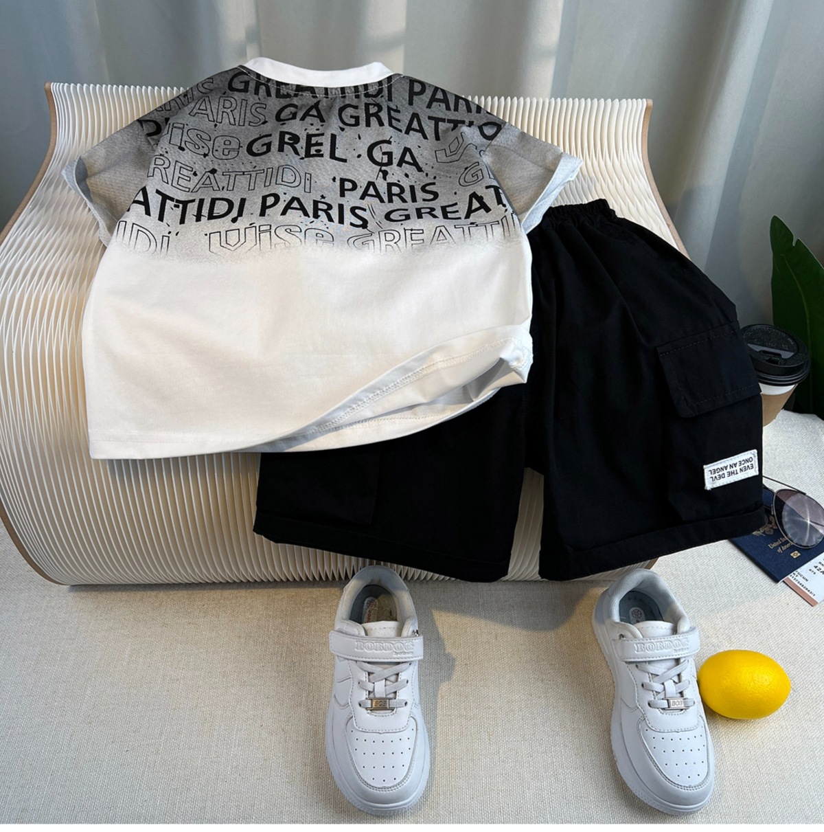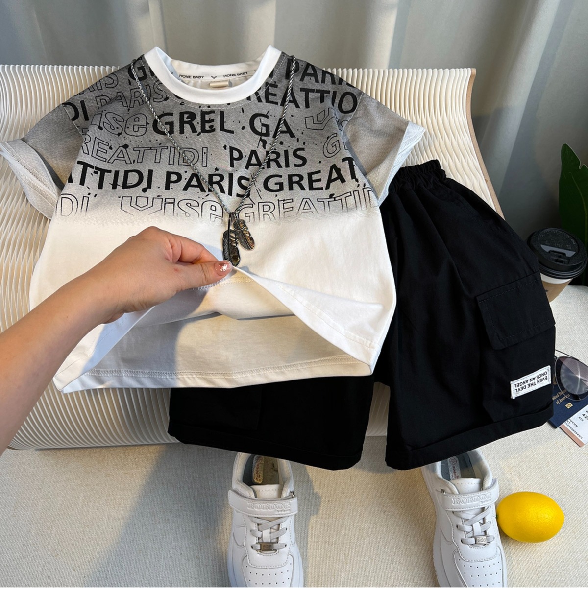 남자 아기 여름 옷 세트 2025 새로운 서양식 어린이 순면 반팔 투피스 세트 잘 생긴 소년의 여름 옷