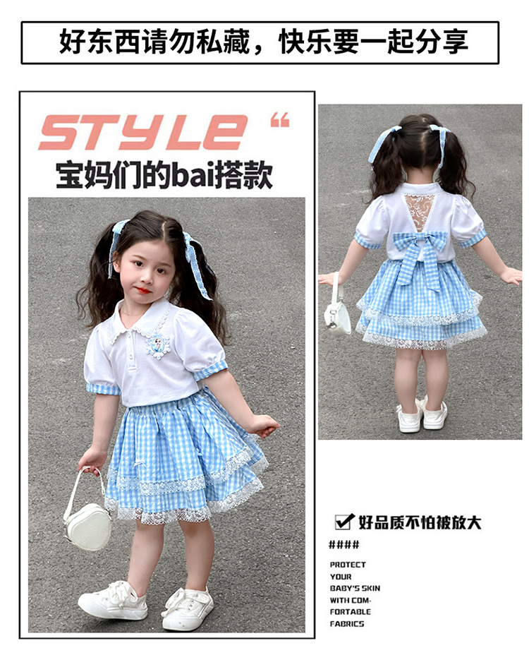 공주 엘사 소녀 여름 정장 2025 새로운 어린이 대학 스타일 반팔 투피스 베이비 여름 스커트스토어 가기