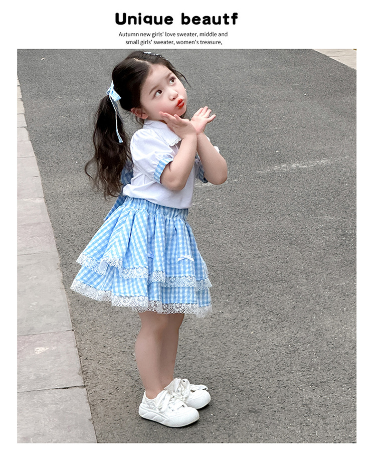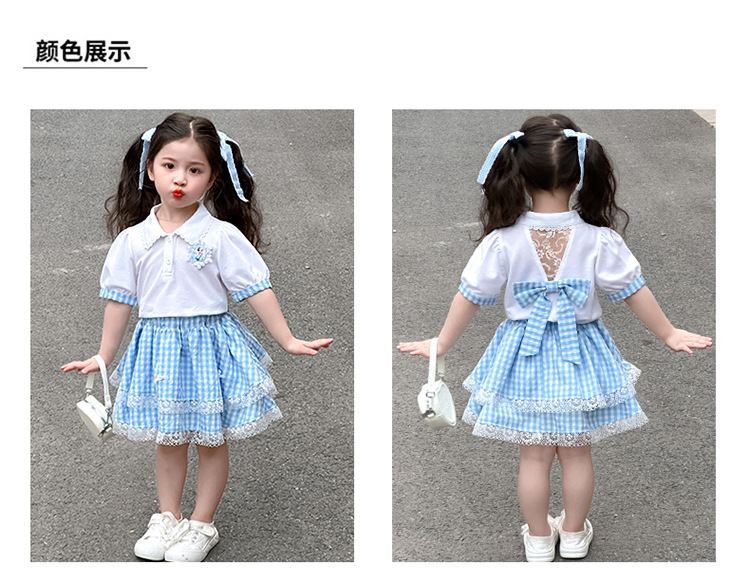 공주 엘사 소녀 여름 정장 2025 새로운 어린이 대학 스타일 반팔 투피스 베이비 여름 스커트