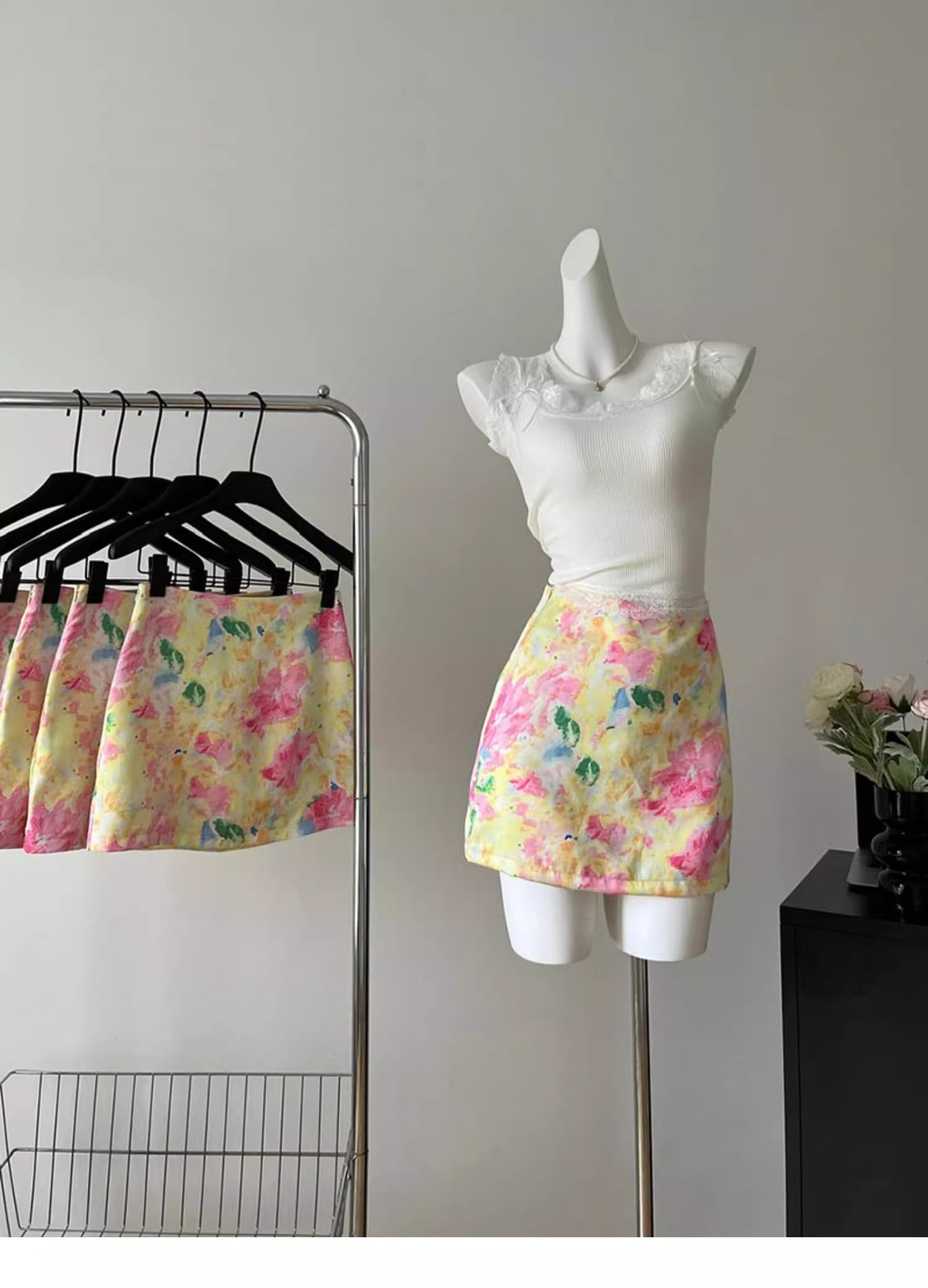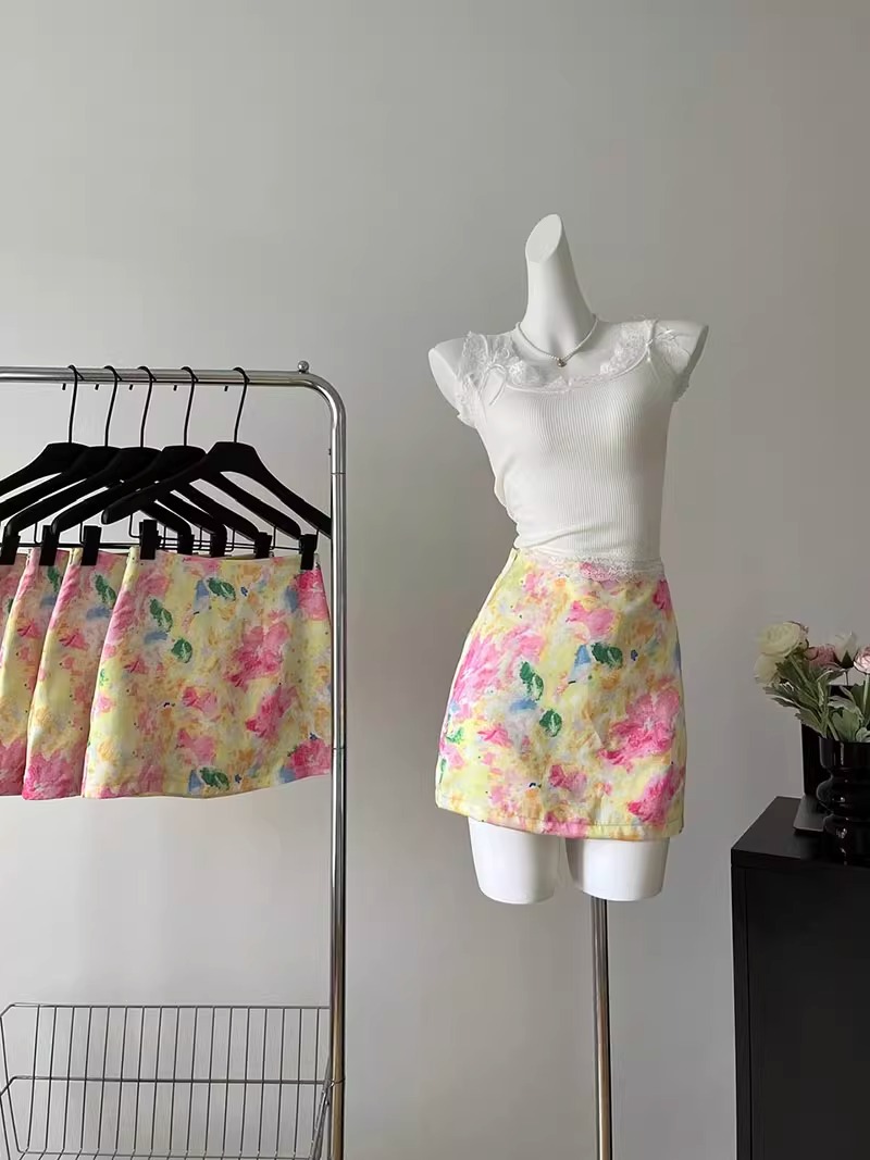여성을위한 새틴 인쇄 꽃 낮은 허리 울트라 짧은 치마 2025 여름 새로운 다목적 섹시한 스커트 여성 트렌드스토어 가기