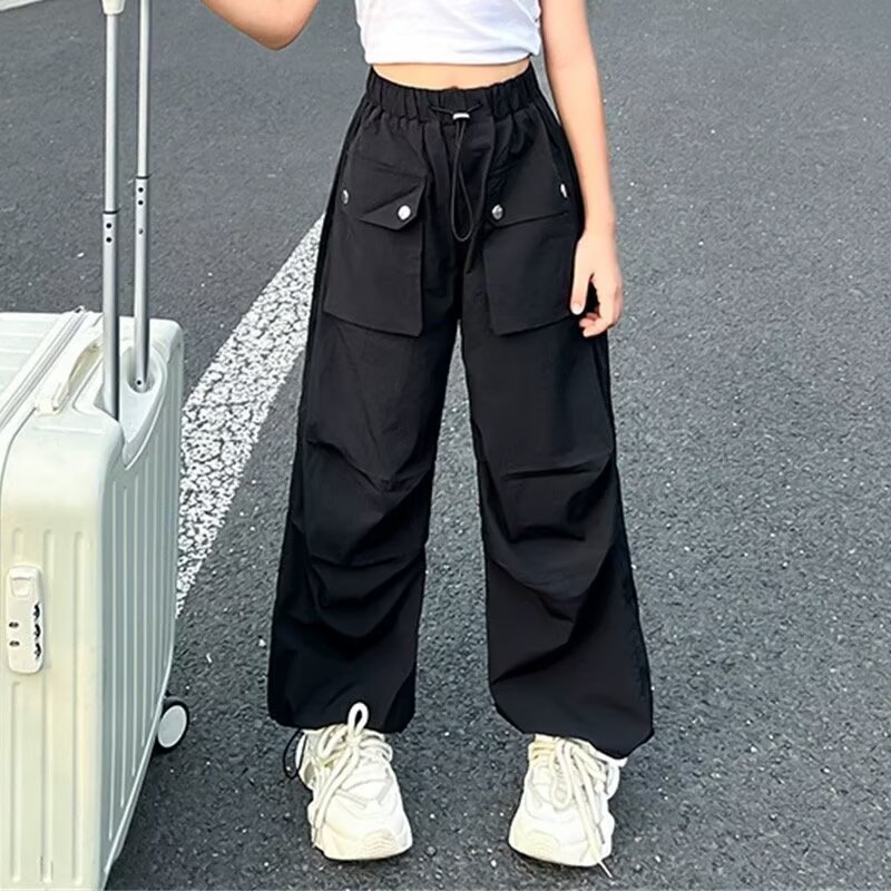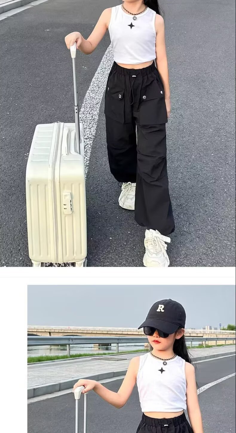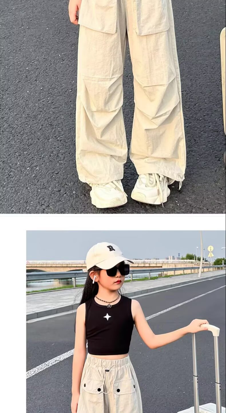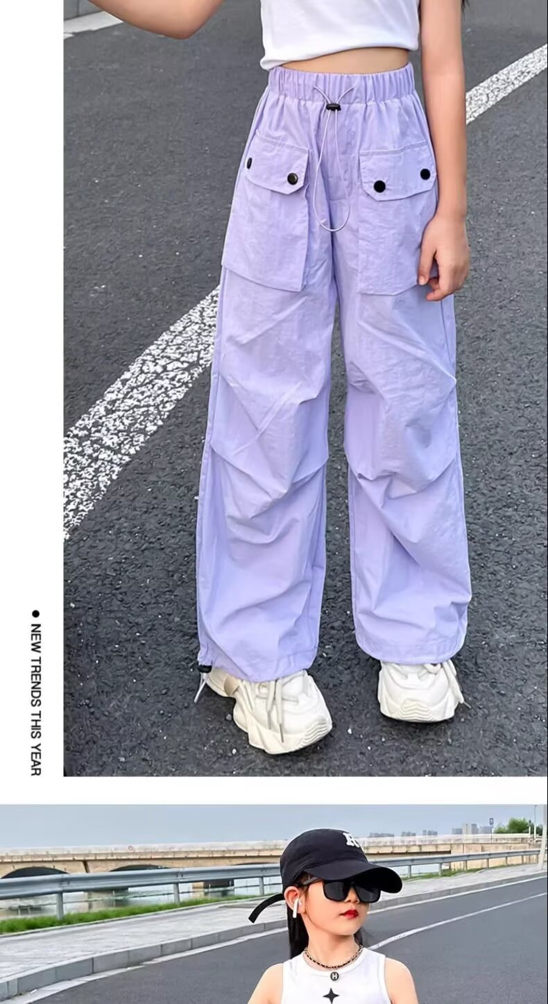 소녀 여름 바지 2025 여름 새로운 대형 및 중형 어린이 서양식 유행 스트레이트 레그 와이드 레그 바지 얇은 긴 바지스토어 가기
