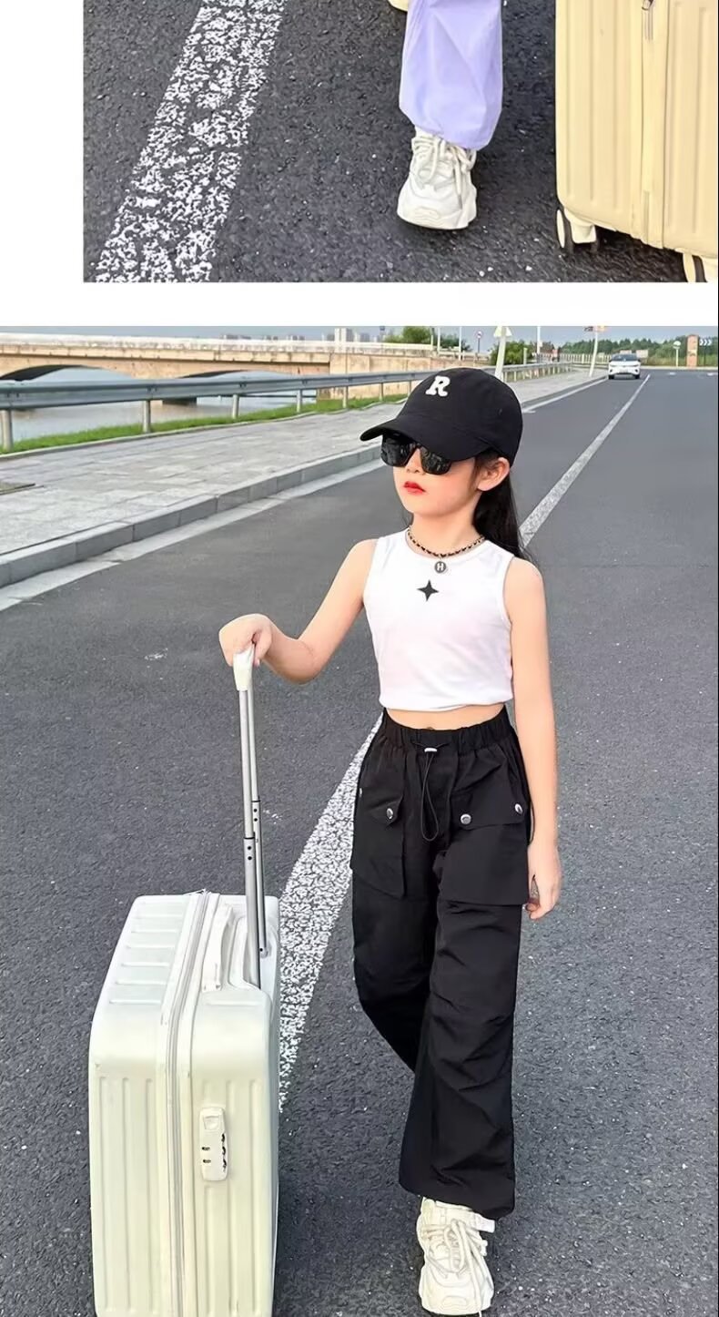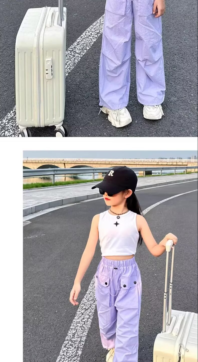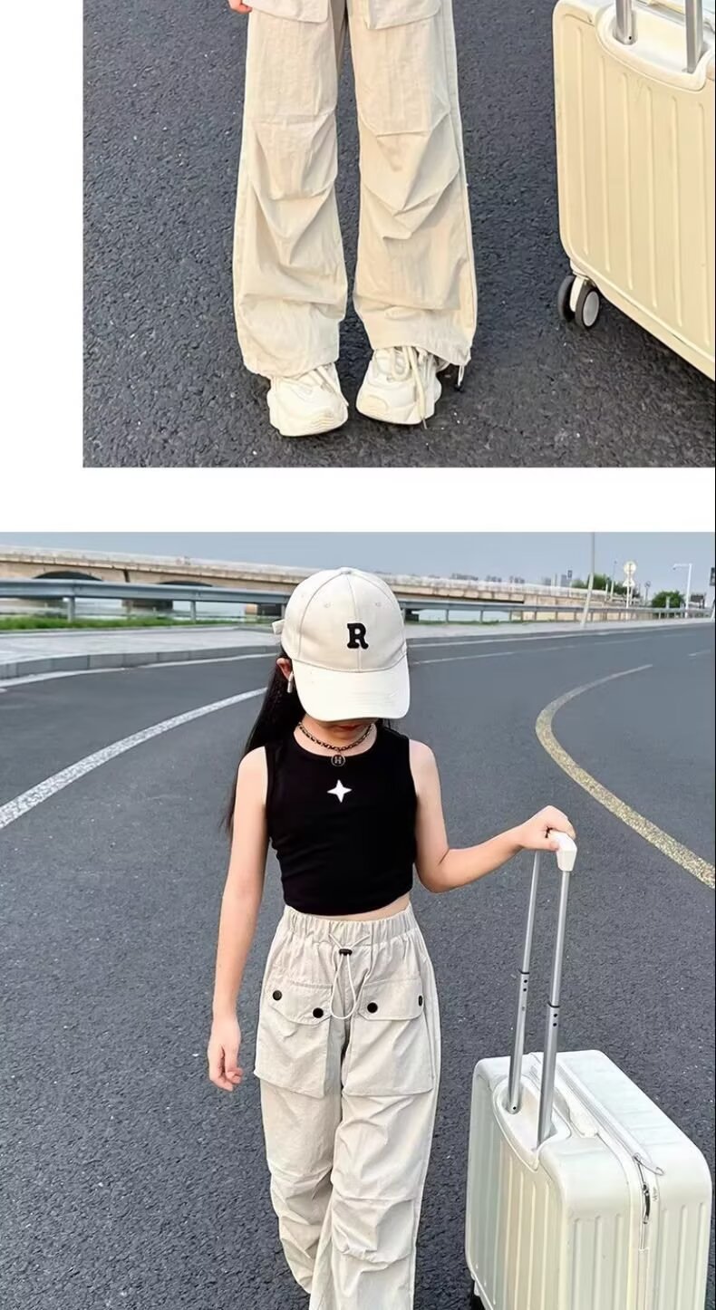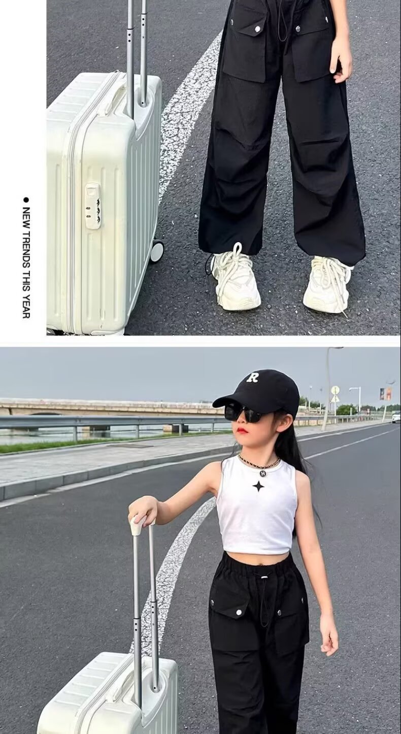 소녀 여름 바지 2025 여름 새로운 대형 및 중형 어린이 서양식 유행 스트레이트 레그 와이드 레그 바지 얇은 긴 바지스토어 가기