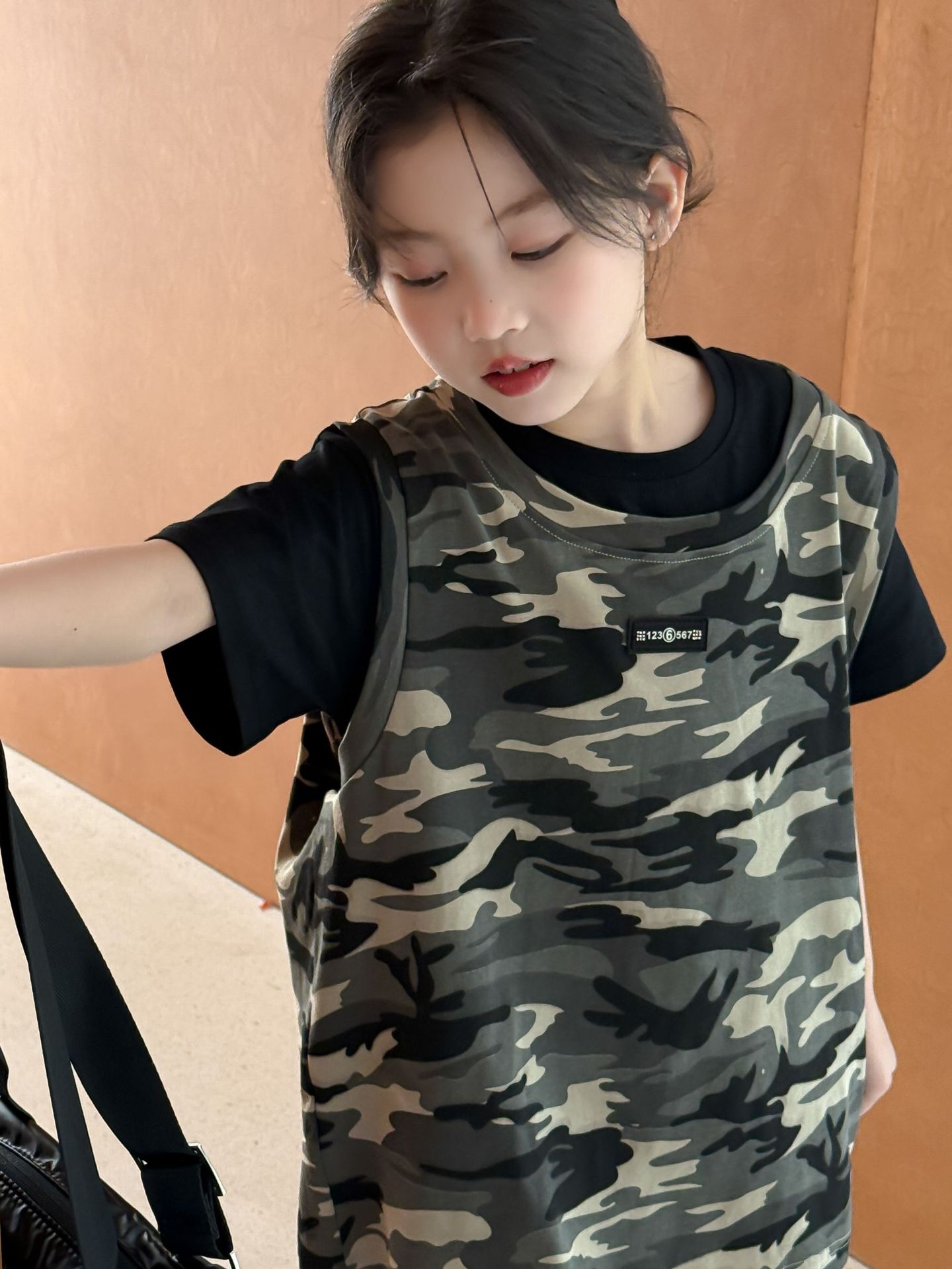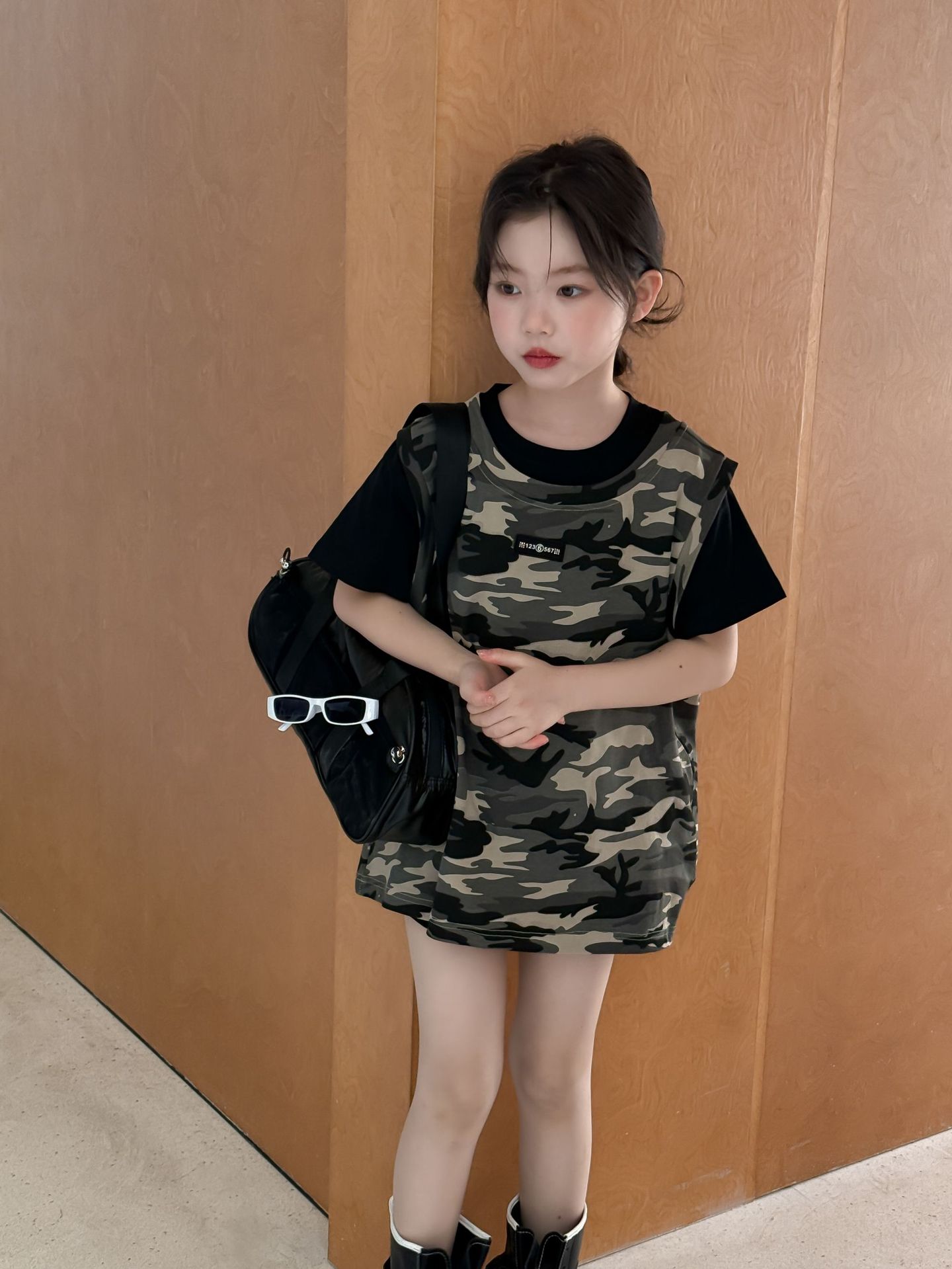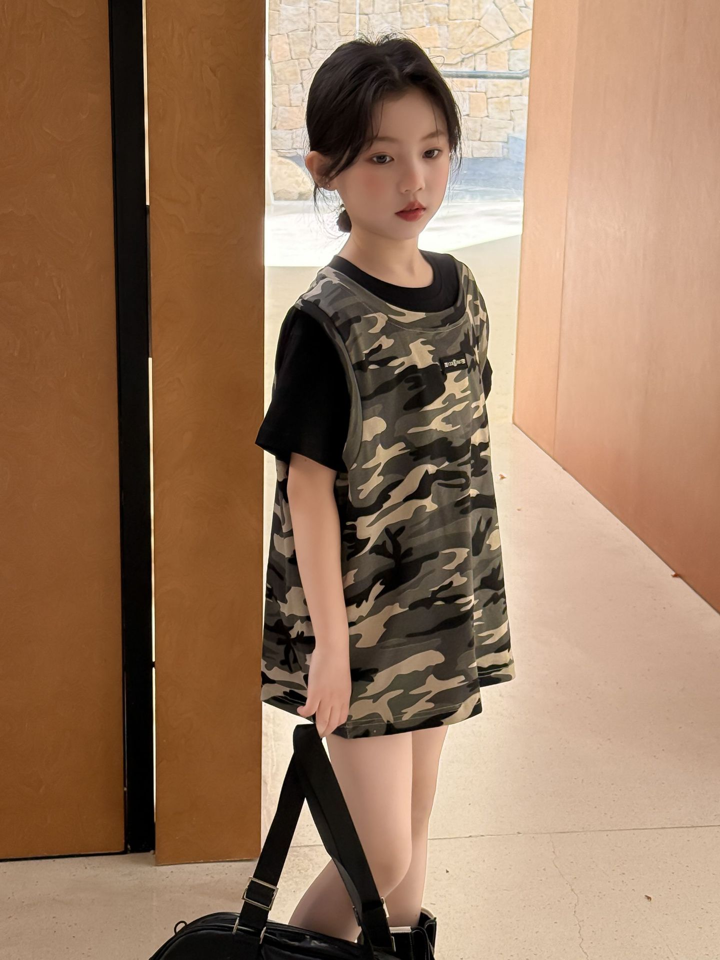 어린이 치마 2025 여름 소녀 위장 민소매 빈 스커트 반팔 티셔츠 원피스 세트 소녀의 유행 투피스 세트스토어 가기