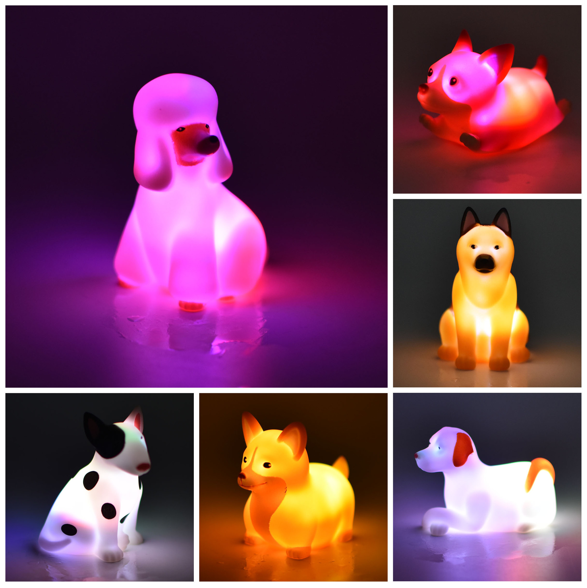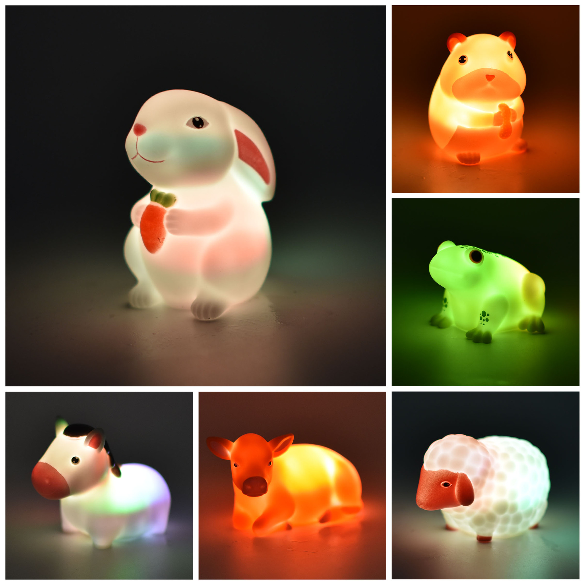 新款跨境儿童洗澡戏水发光搪胶玩具触摸灯光闪光农场动物套装玩具