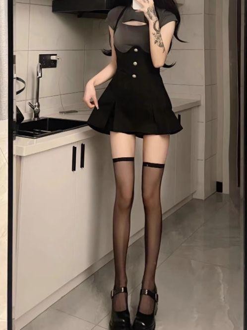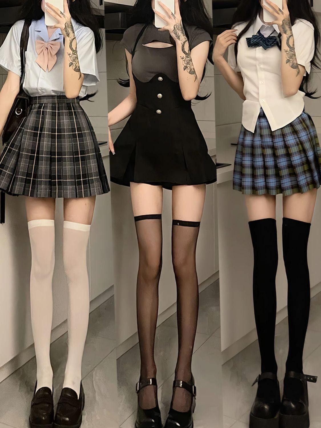 섹시한 검은색 반투명 무릎 위 흰색 스타킹 압박 슬리밍 jk 벨벳 하이탑 스타킹 얇은 검은색 스타킹스토어 가기