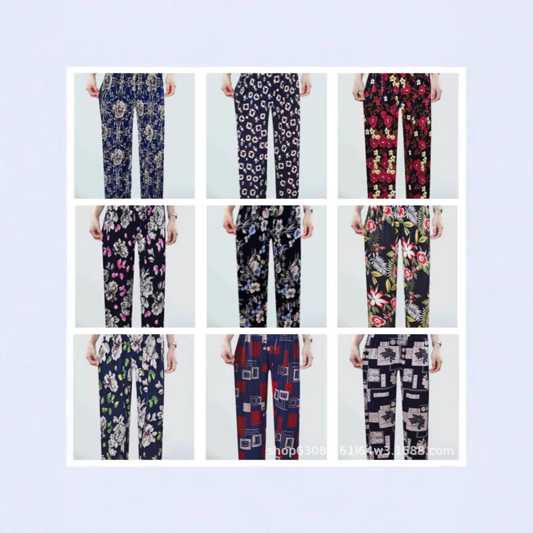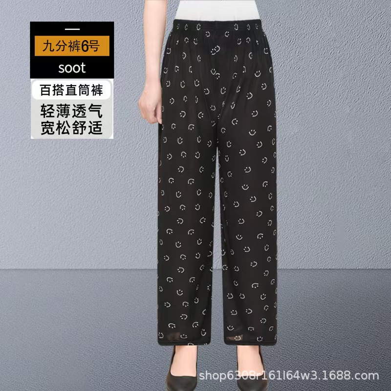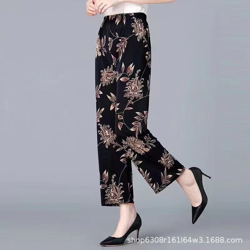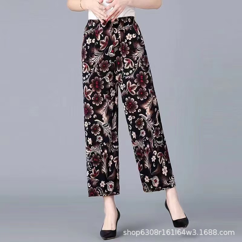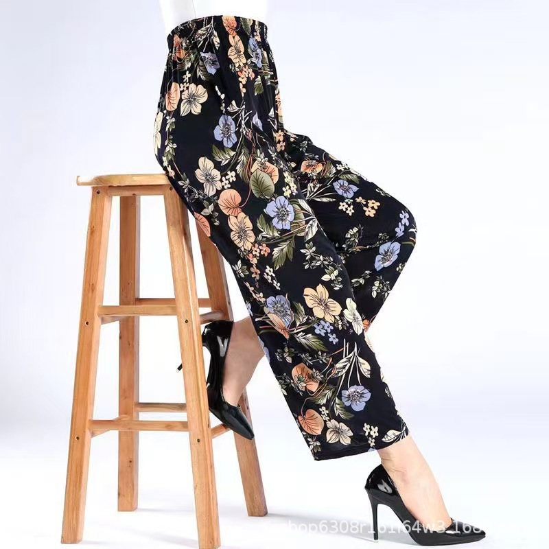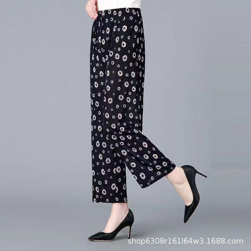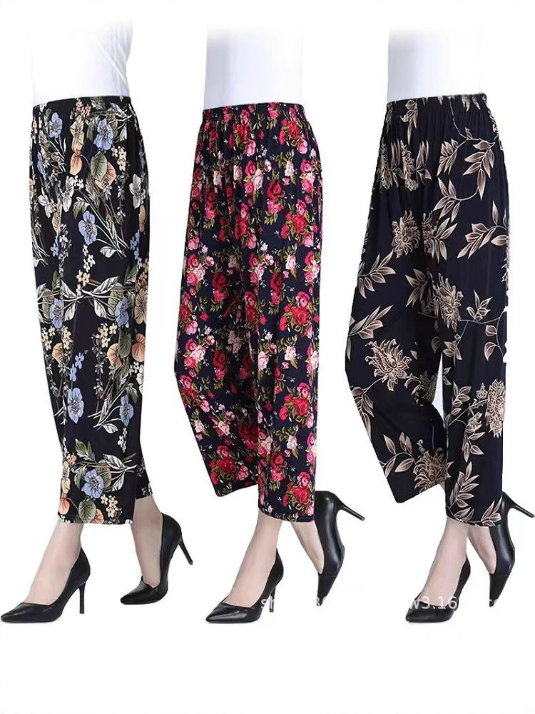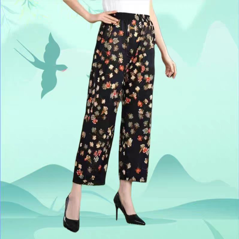 중년 및 노인 여성 꽃 바지 여름 아이스 실크 나인포인트 얇은 캐주얼 중년 및 노인 플러스 지방 높은 허리 느슨한 모기 방지 엄마 바지스토어 가기