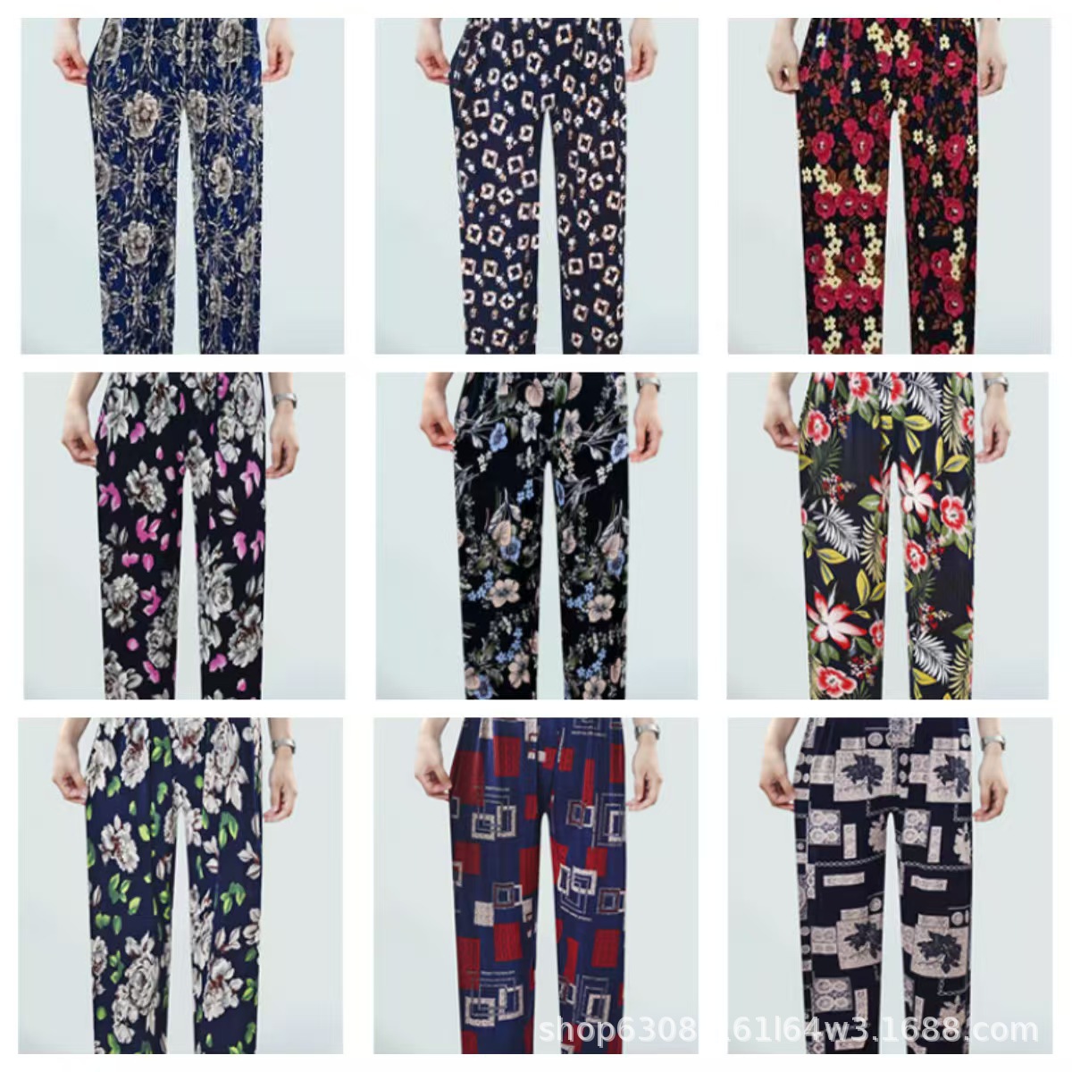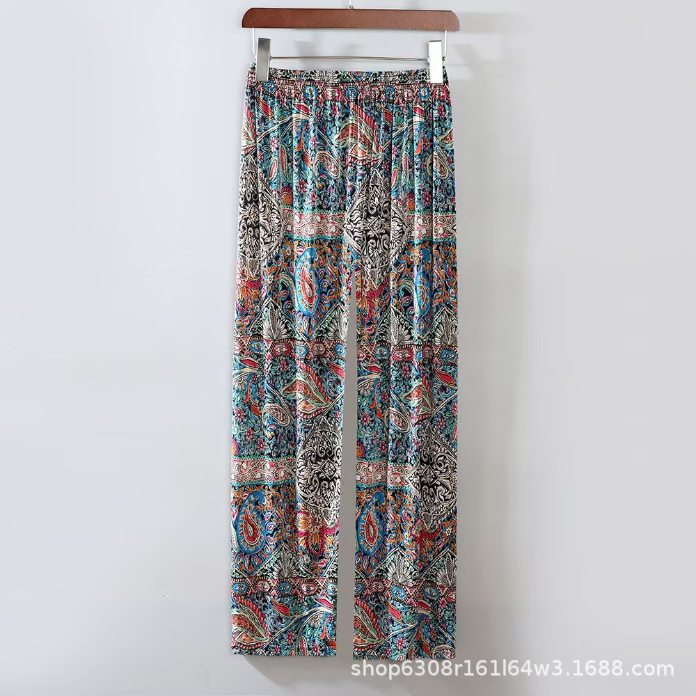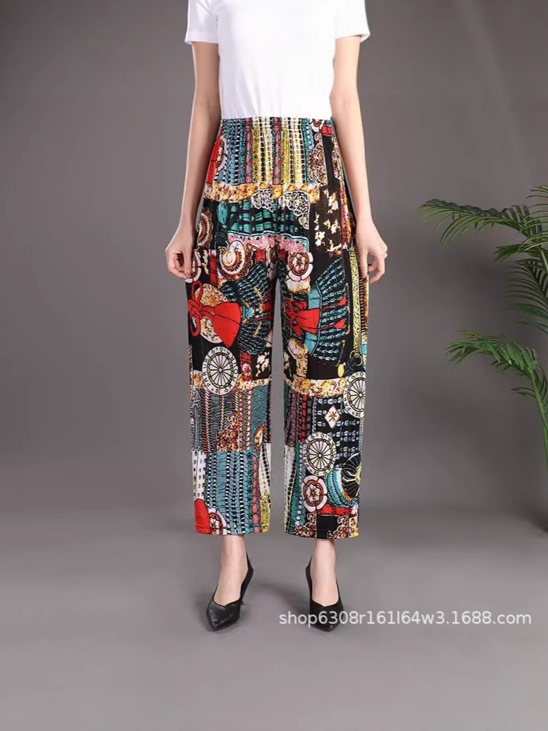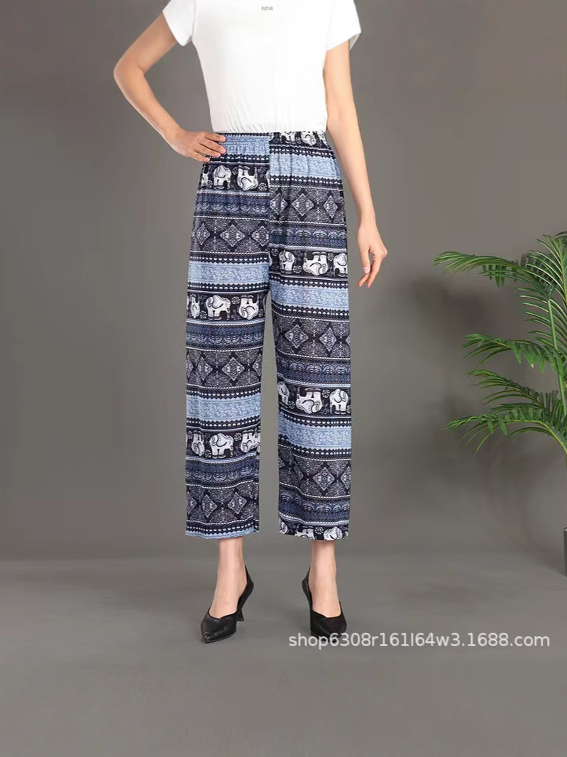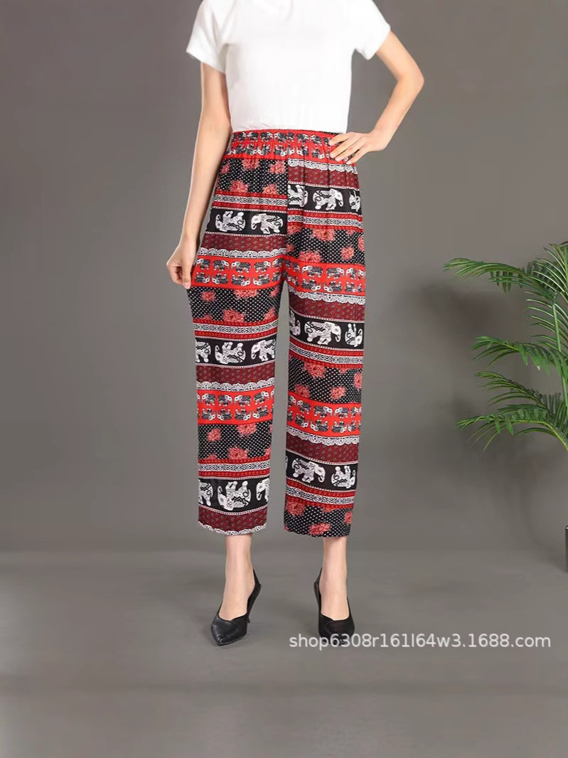 중년 및 노인 여성 꽃 바지 여름 아이스 실크 나인포인트 얇은 캐주얼 중년 및 노인 플러스 지방 높은 허리 느슨한 모기 방지 엄마 바지스토어 가기