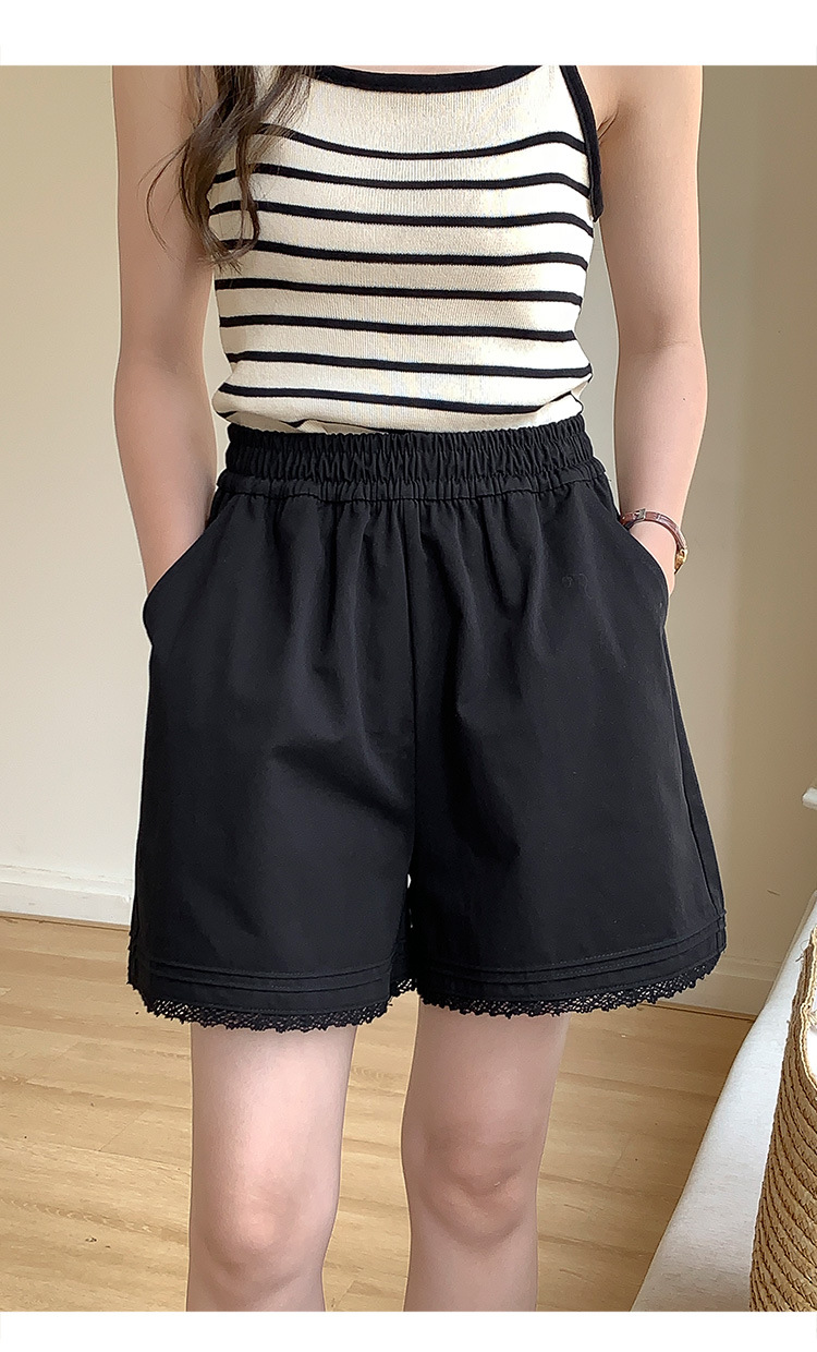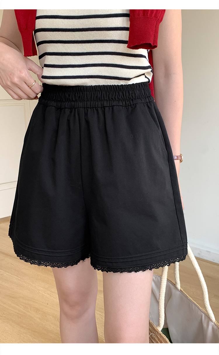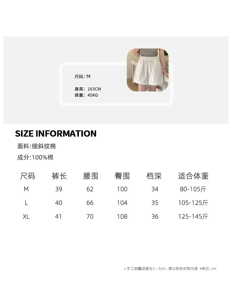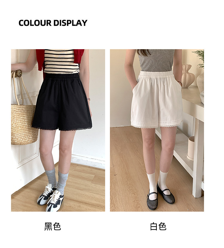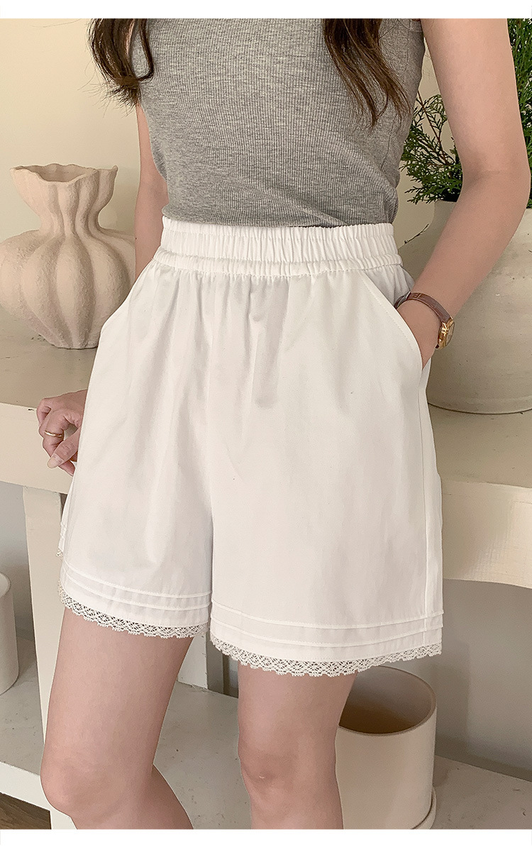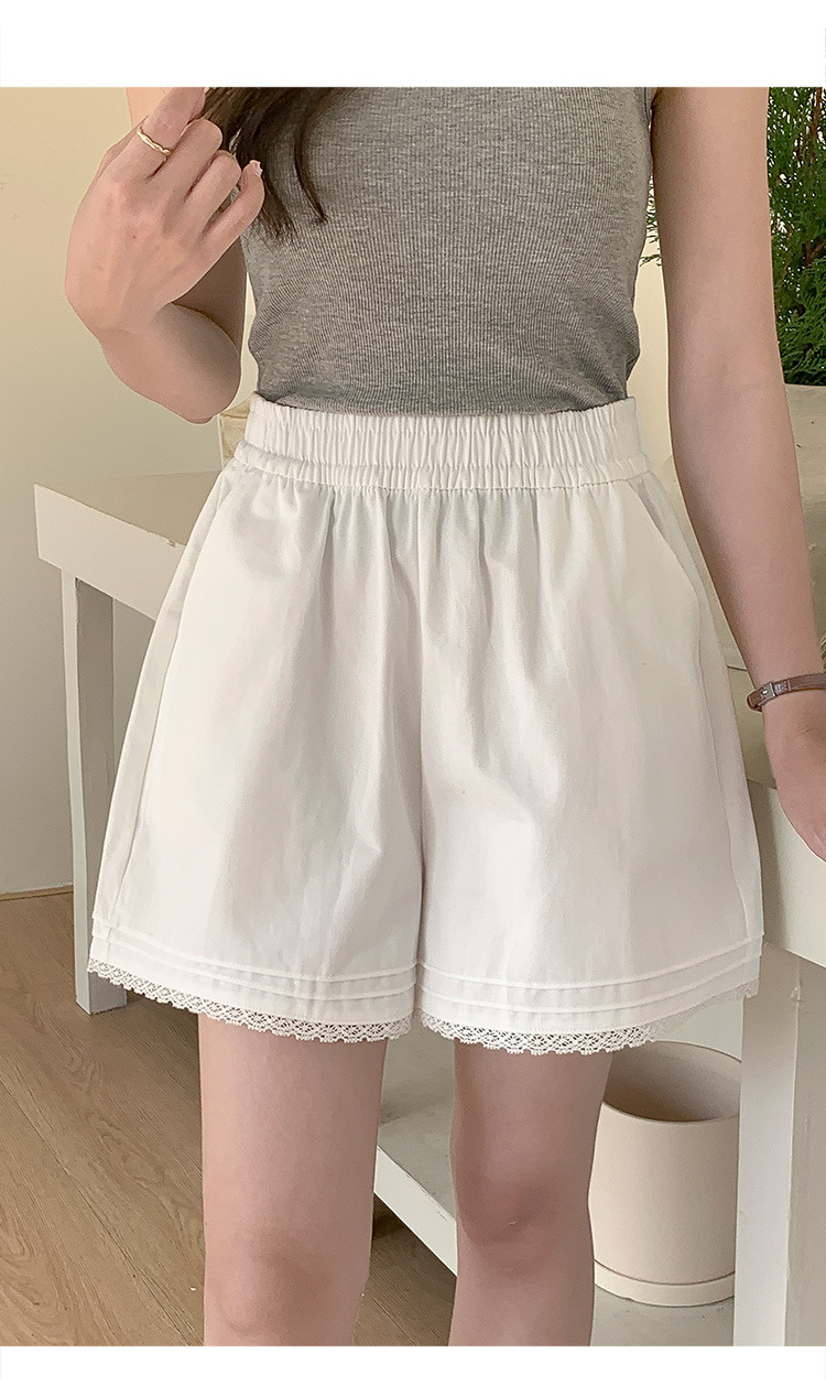 2026 여름 하이웨이스트 캐주얼 화이트 루즈핏 쁘띠 사이즈 순면 레이스 트리밍 반바지 여성용 A라인 3부 핫팬츠스토어 가기