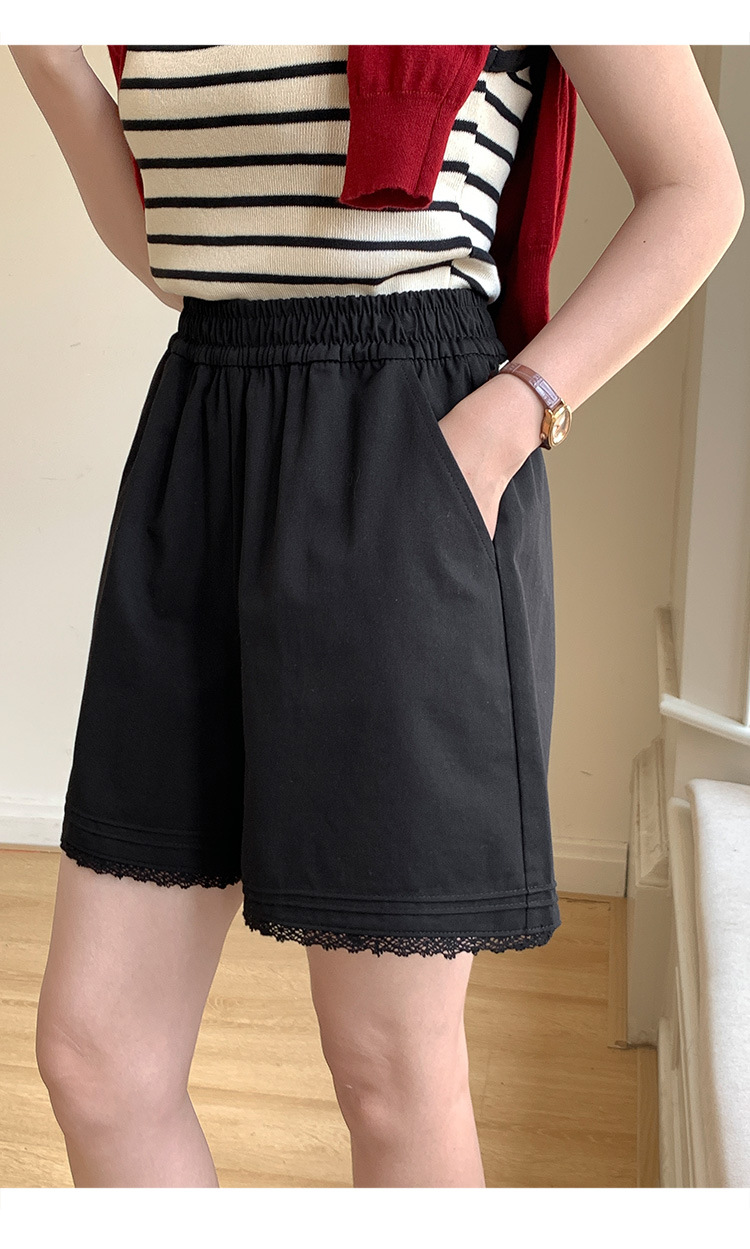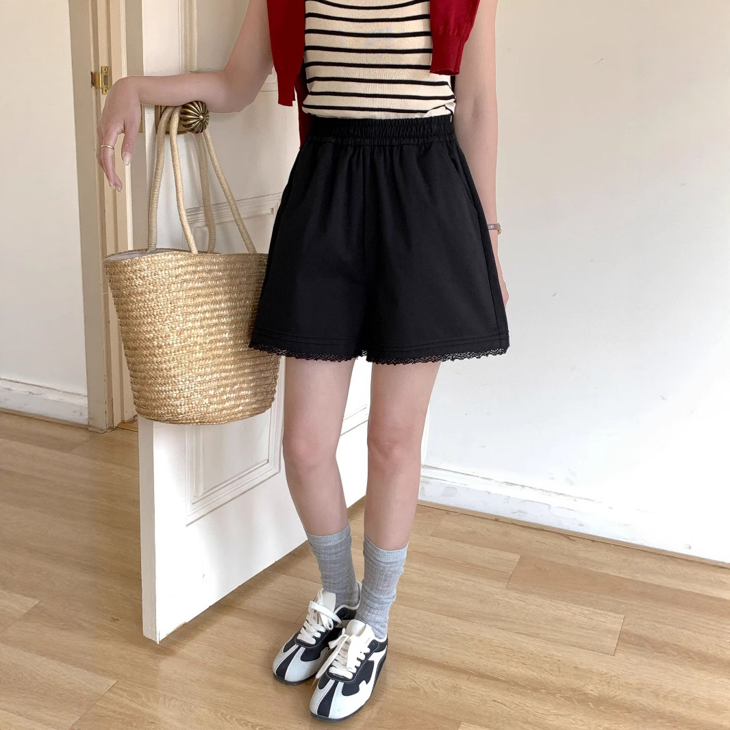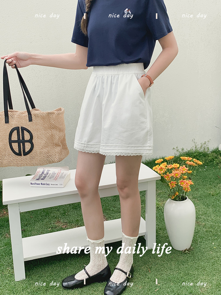 2026 여름 하이웨이스트 캐주얼 화이트 루즈핏 쁘띠 사이즈 순면 레이스 트리밍 반바지 여성용 A라인 3부 핫팬츠