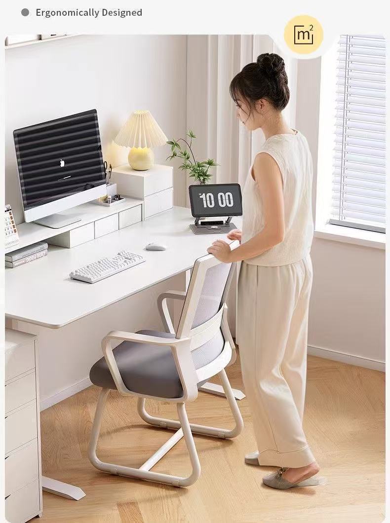 • 구름 위에 앉는 느낌 - 두꺼워진 의자 다리 - 스펀지 쿠션 - 화이트 프레임과 그레이 메쉬