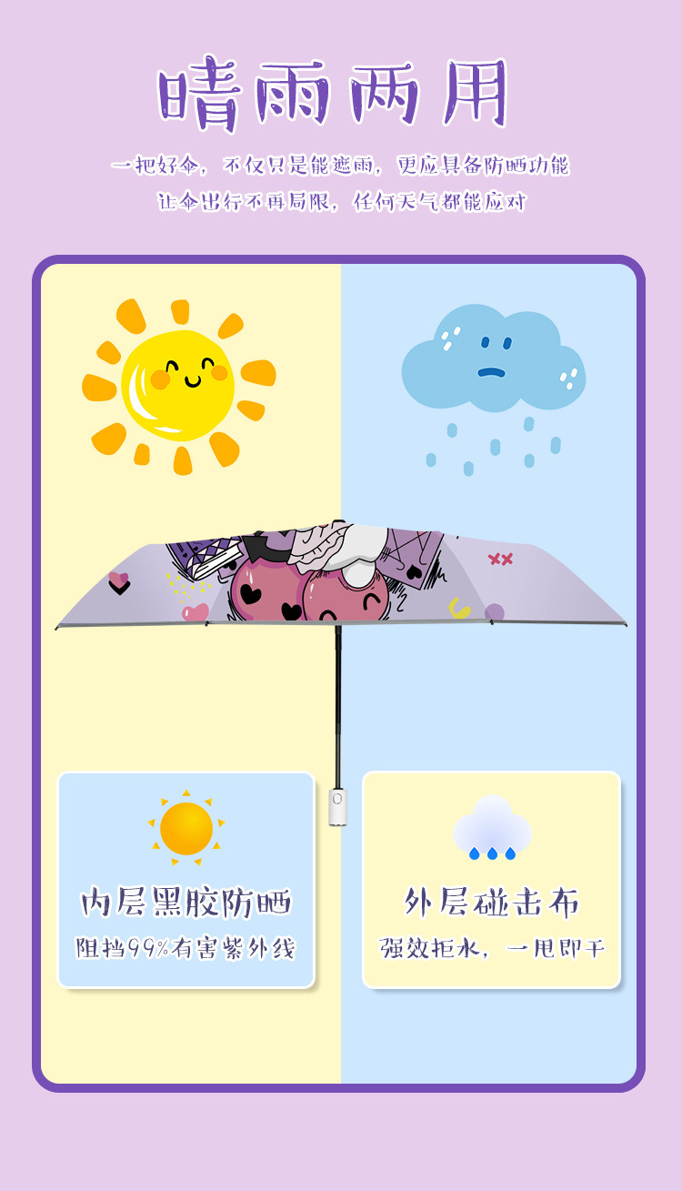 만화 쿠로미 어린이 우산 반동 방지 안전 학교 초등학생 반사 비 또는 빛 양산 우산