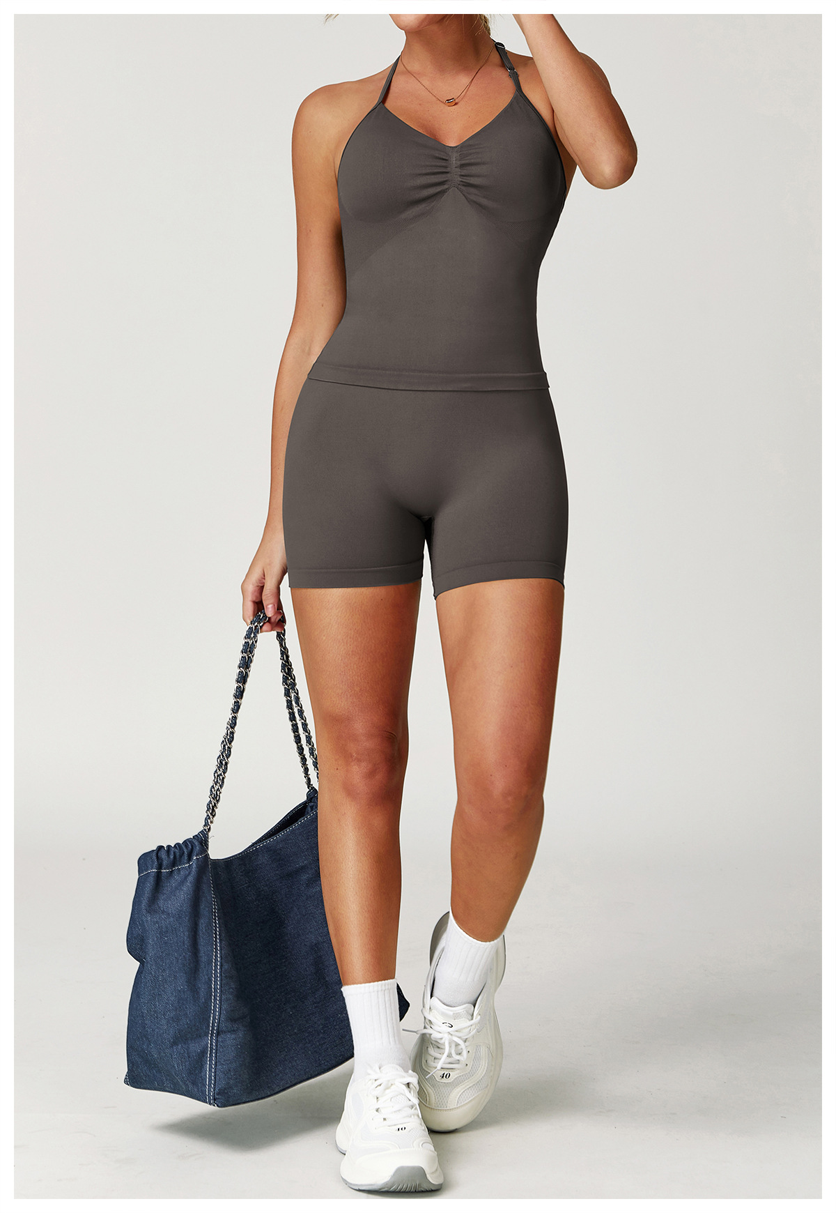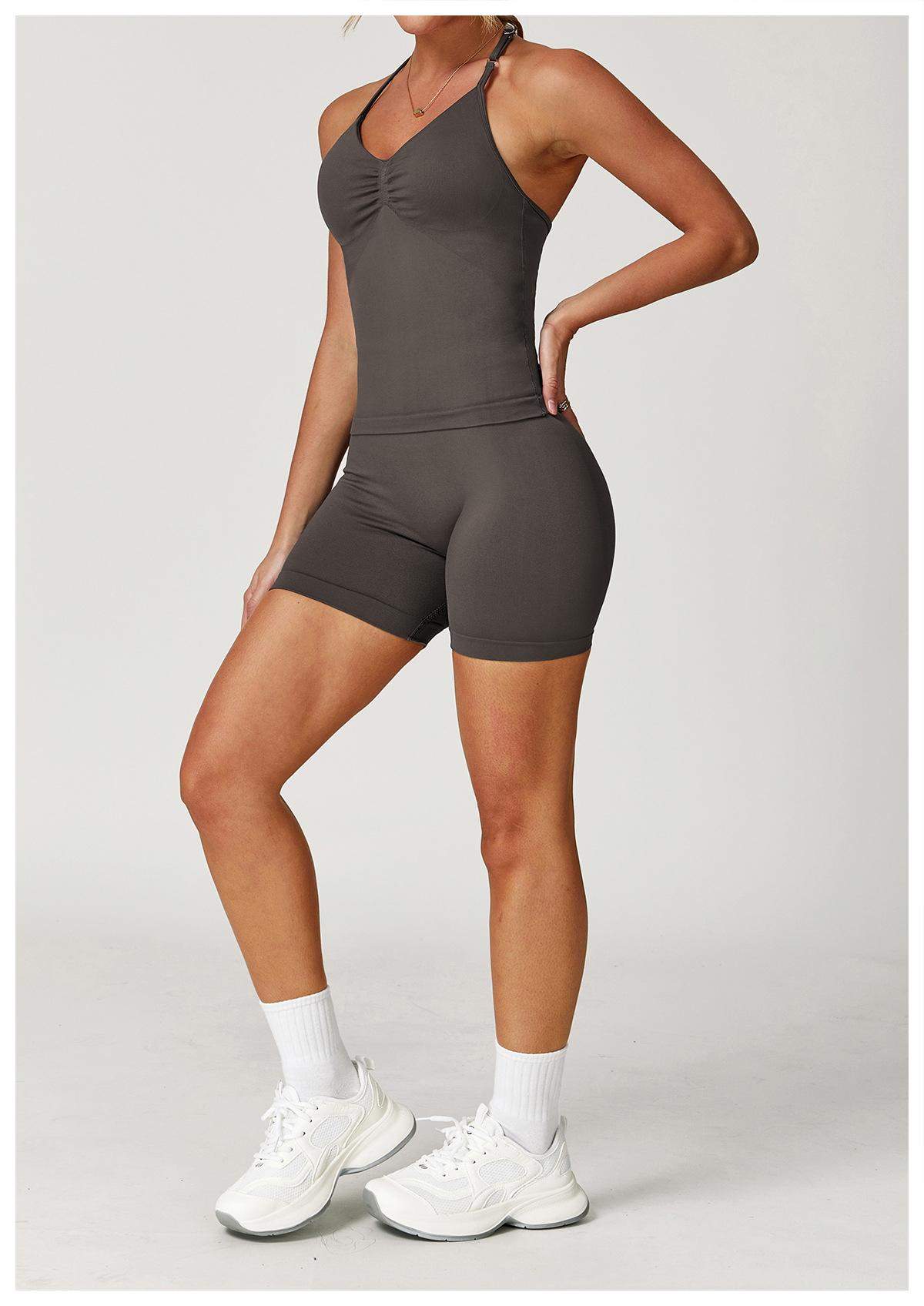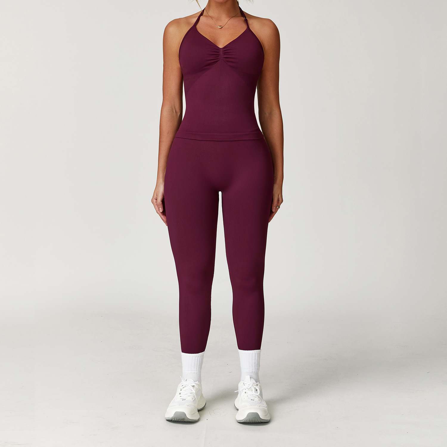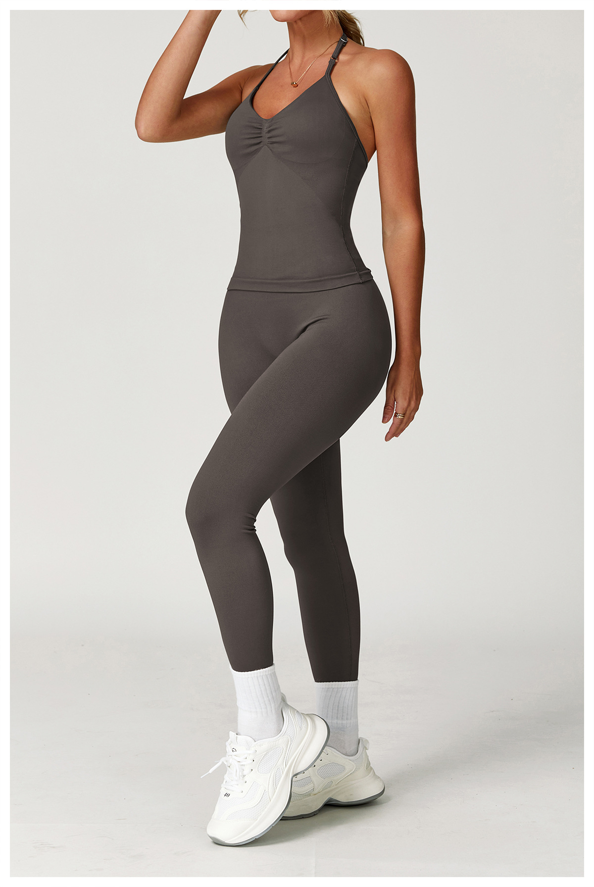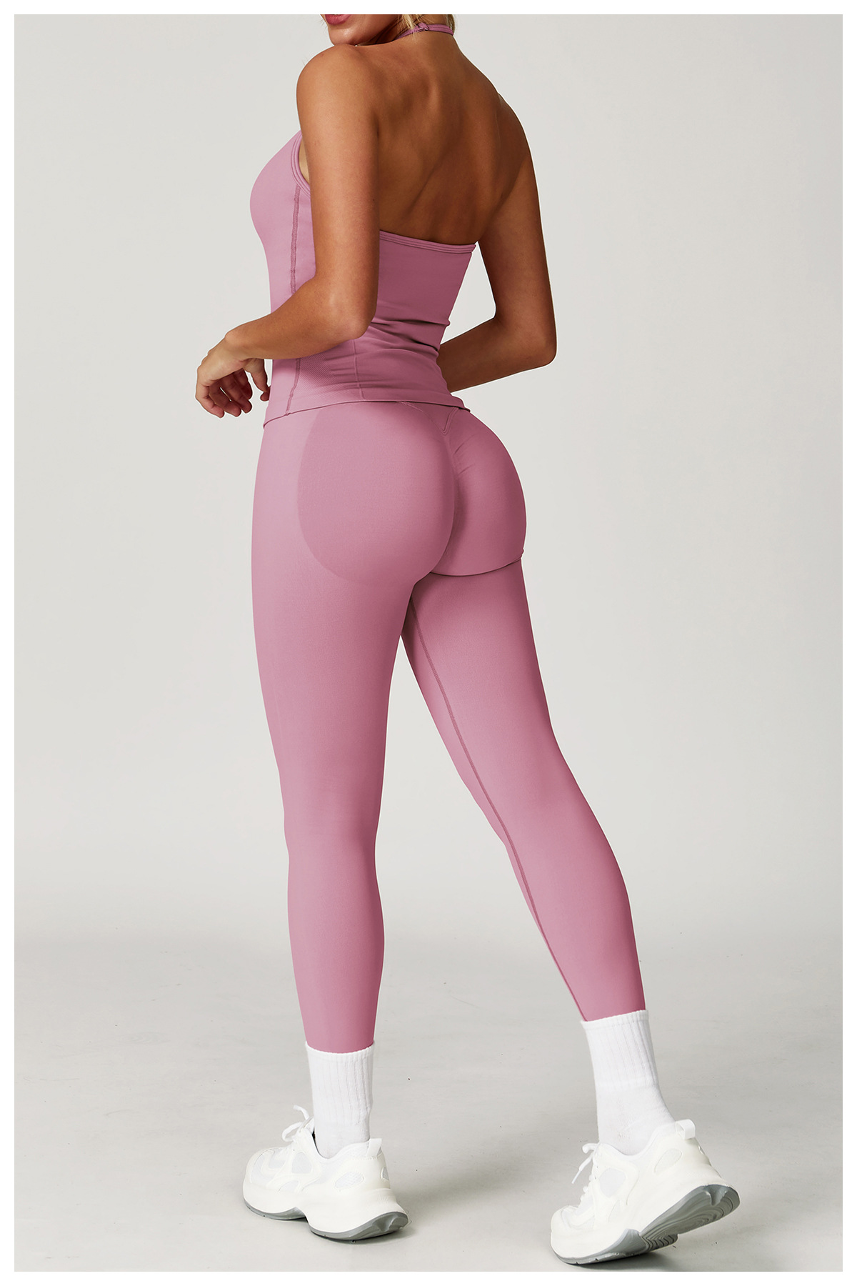 Zechuang 교차 국경 원활한 요가 세트 교수형 목 꽉 끼는 피트니스 옷 스포츠 달리기 허리 세트 여성 5065