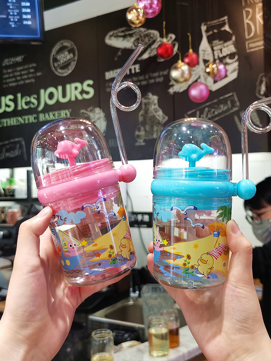 작은 고래는 물을 뿜을 수 있습니다 컵 어린이 가정용 물병 만화 마시는 주전자 돌고래 금붕어 작은 물고기 분수 물 컵스토어 가기