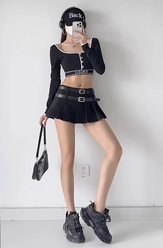 플러스 사이즈 뚱뚱한 검은색 주름 스커트 여성 여름 슬리밍 섹시한 순수한 욕망 스타일 a 라인 미니 스커트스토어 가기