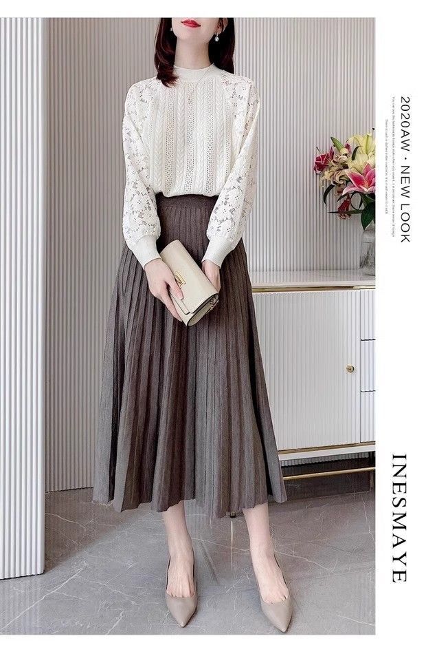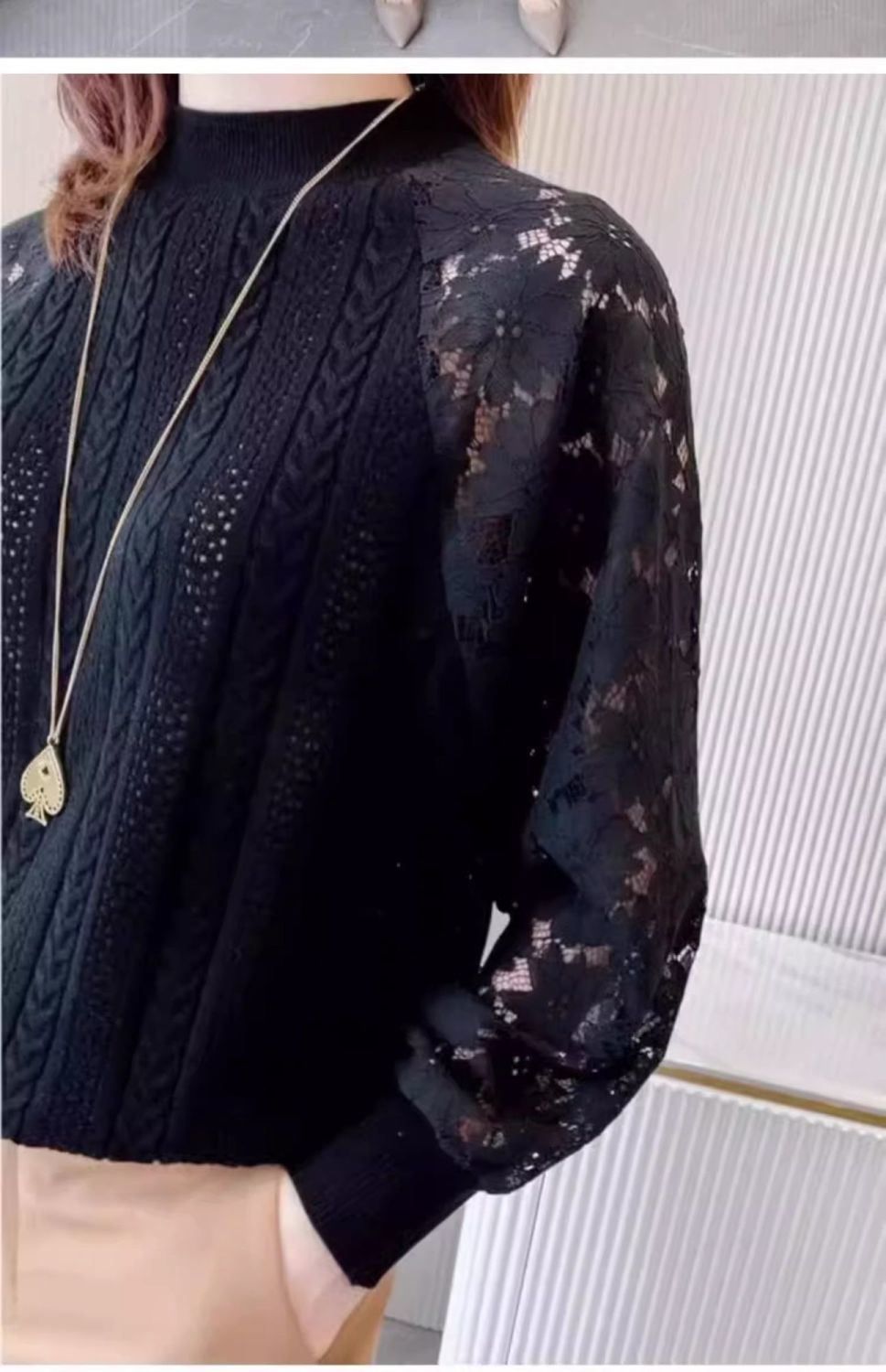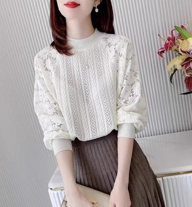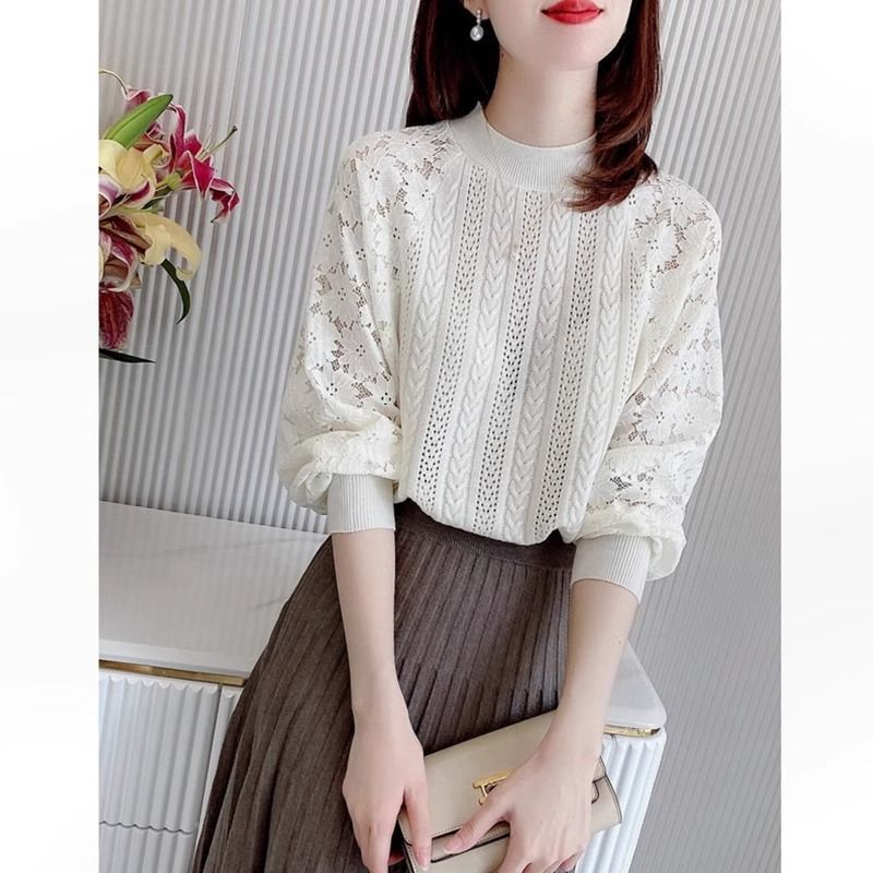여성용 하프 터틀넥 니트 바닥 셔츠 2025 봄, 가을, 겨울 새로운 한국 스타일 레이스 스웨터 탑 트렌디스토어 가기