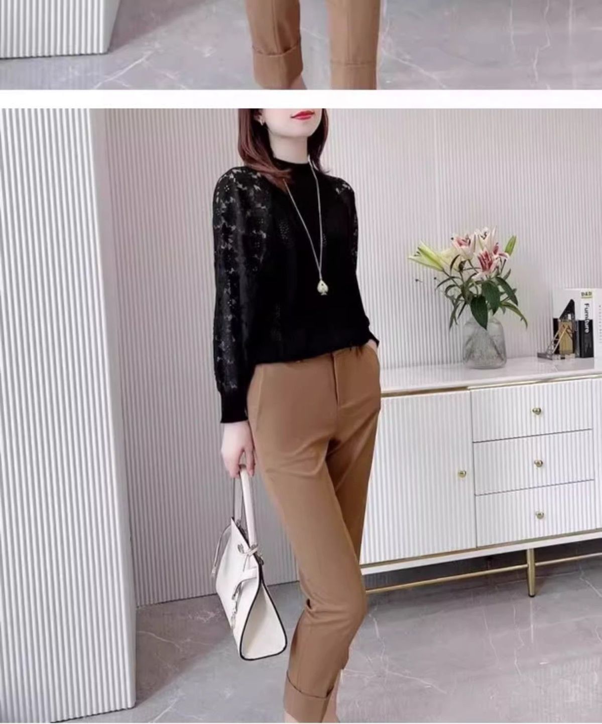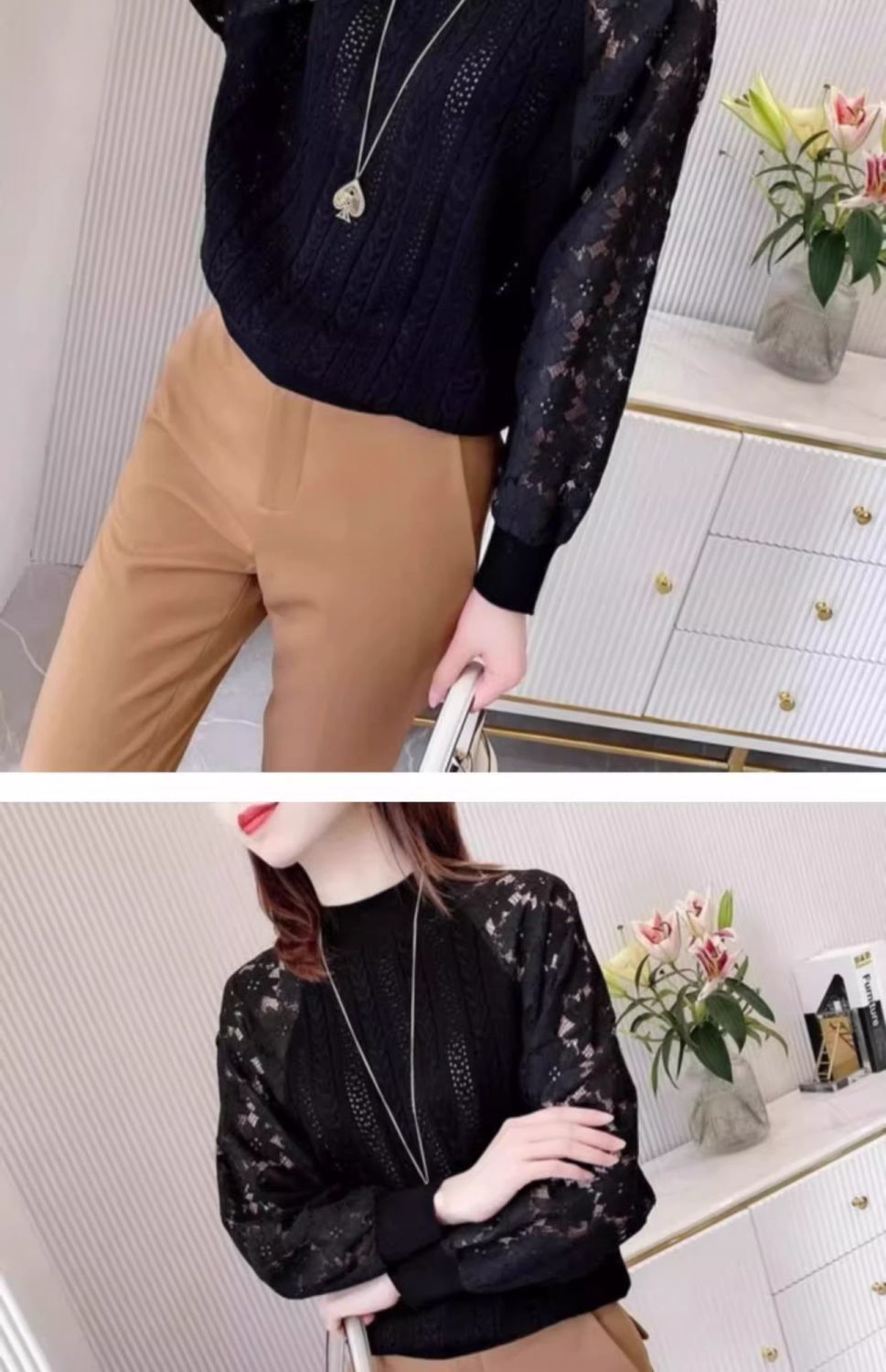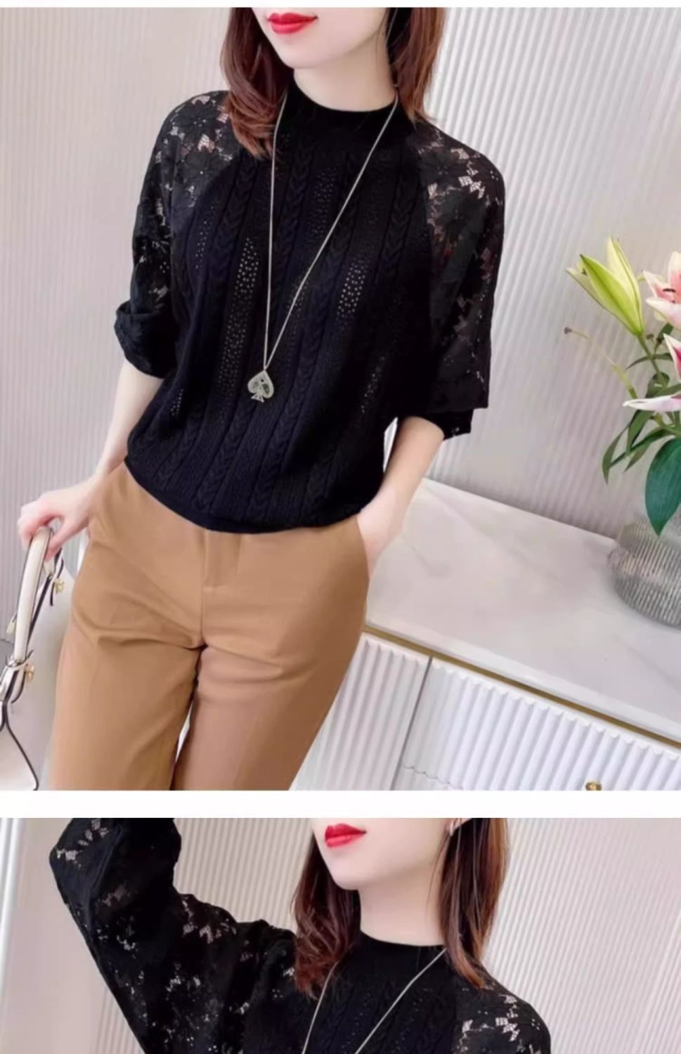 여성용 하프 터틀넥 니트 바닥 셔츠 2025 봄, 가을, 겨울 새로운 한국 스타일 레이스 스웨터 탑 트렌디스토어 가기