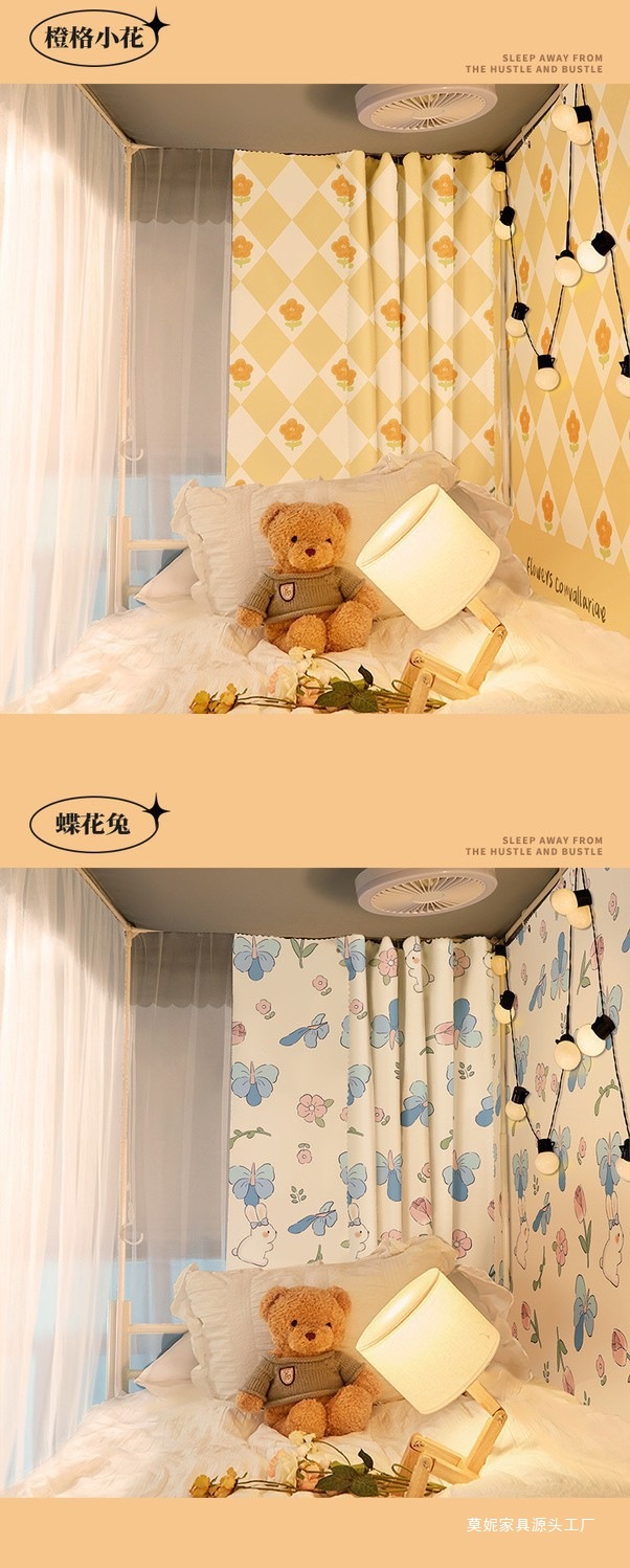 브래킷 침대 커튼이있는 모기장 통합 학생 기숙사 정전 커튼 천 상부 이층 및 하부 이층 범용 올인 클루스토어 가기