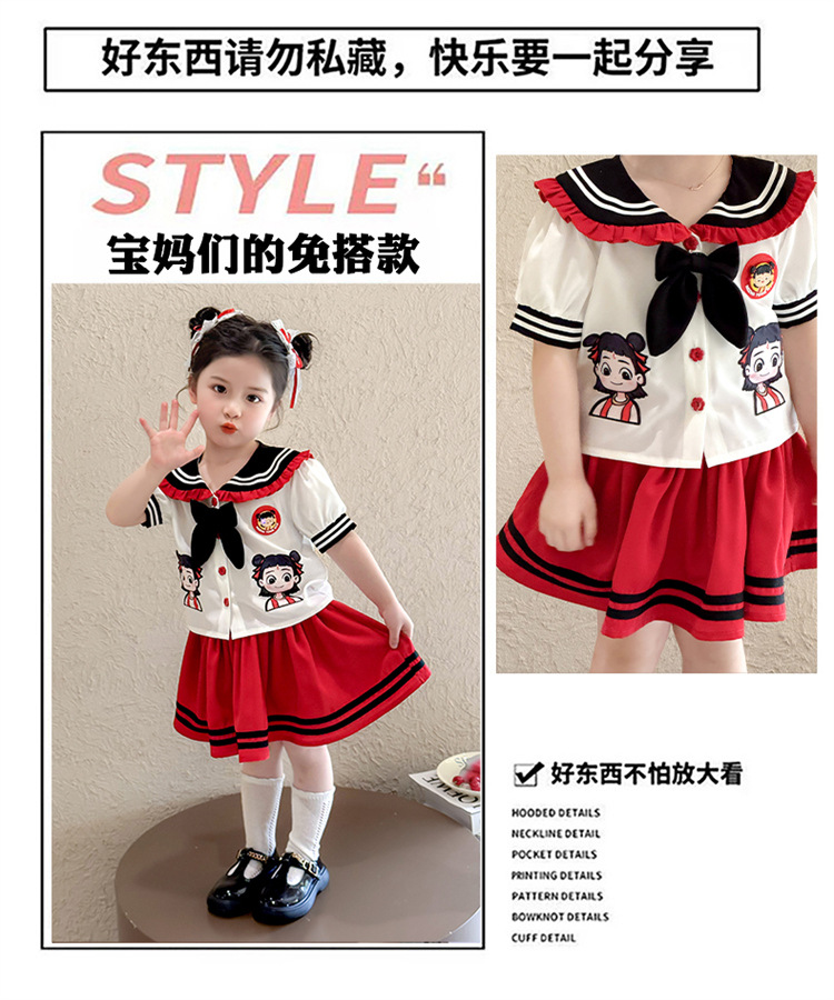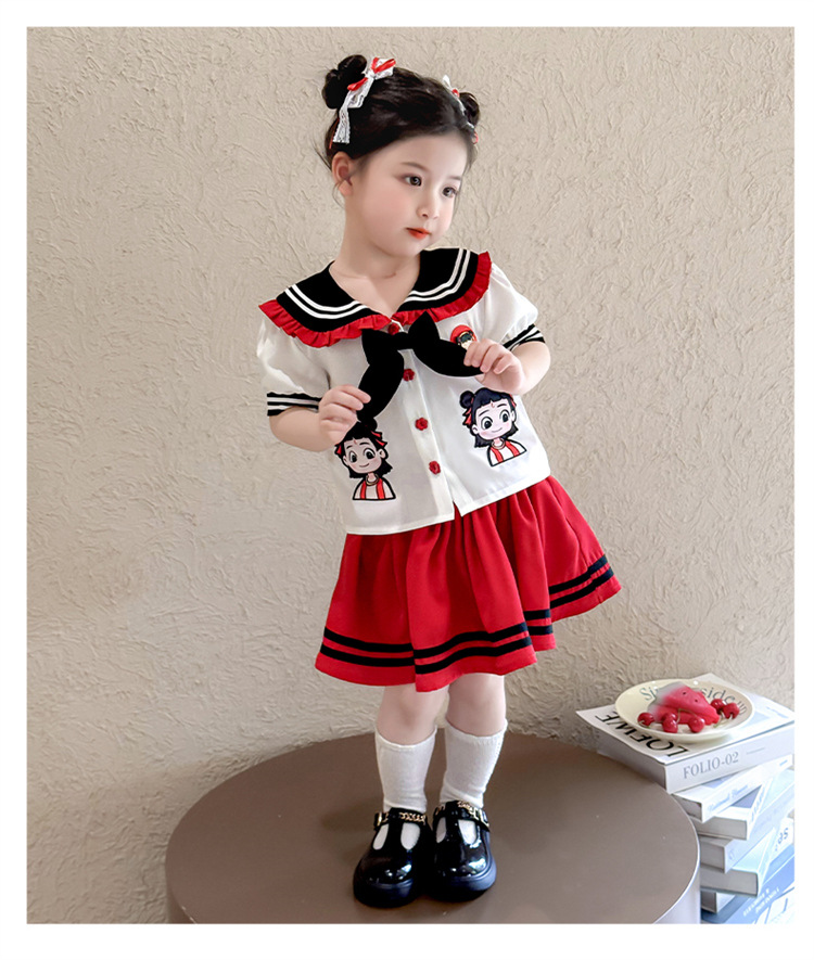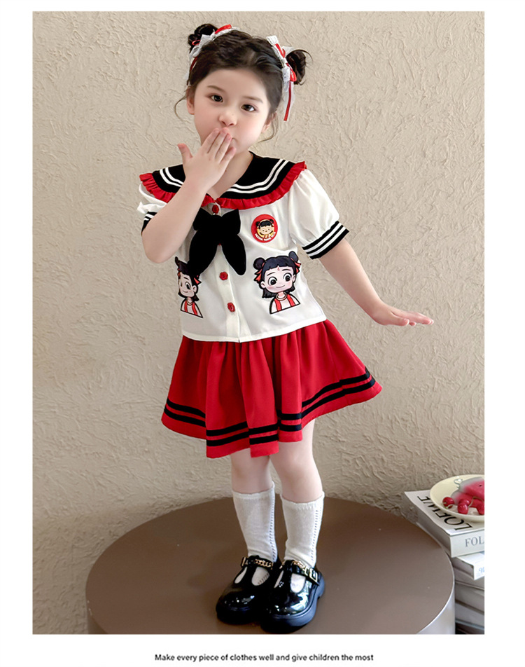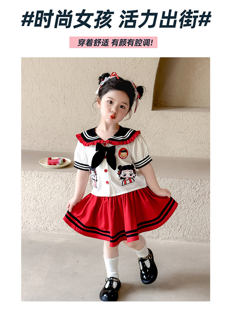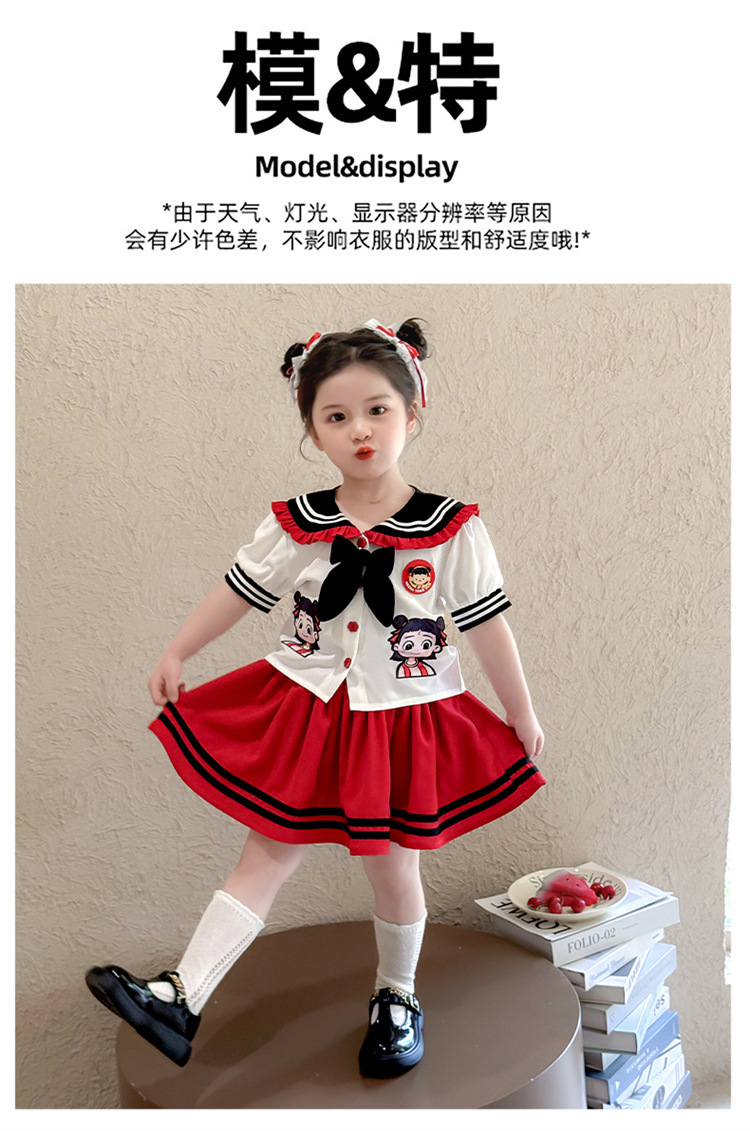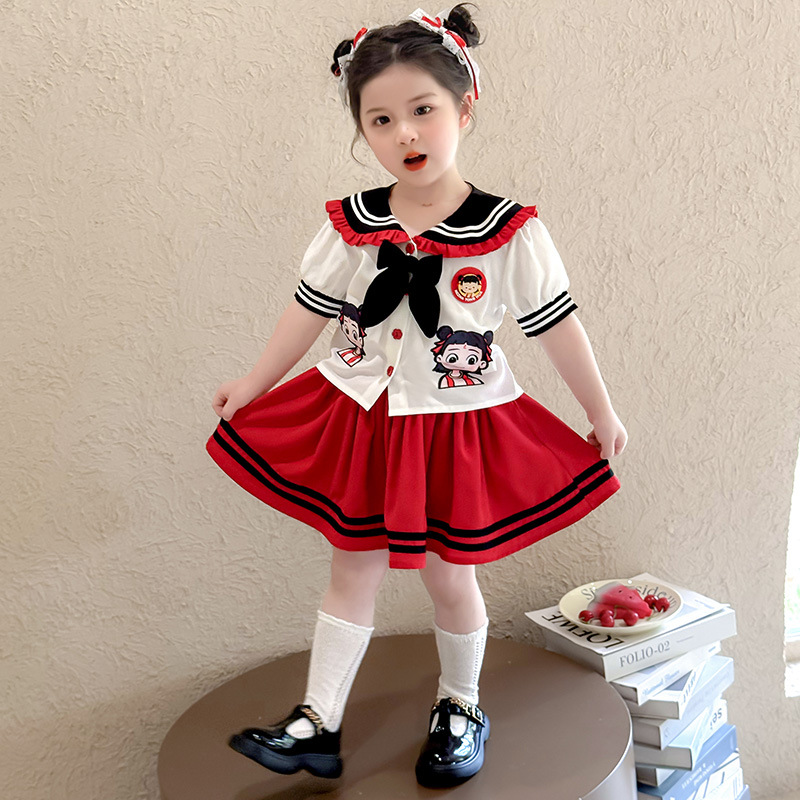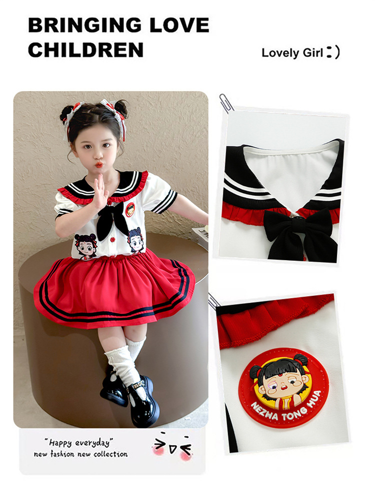 여자 여름 대학 스타일 Nezha jk 유니폼 스커트 정장 어린이 반팔 스커트 아기 소녀 만화 옷 유행스토어 가기