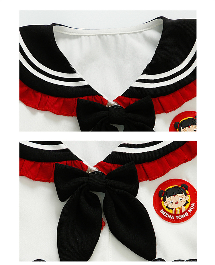 여자 여름 대학 스타일 Nezha jk 유니폼 스커트 정장 어린이 반팔 스커트 아기 소녀 만화 옷 유행