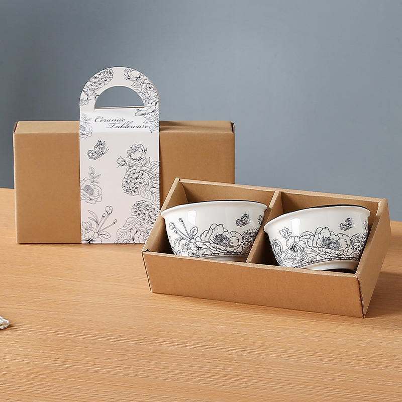 • 흰색 검정색 실 2그릇 2젓가락 선물 상자