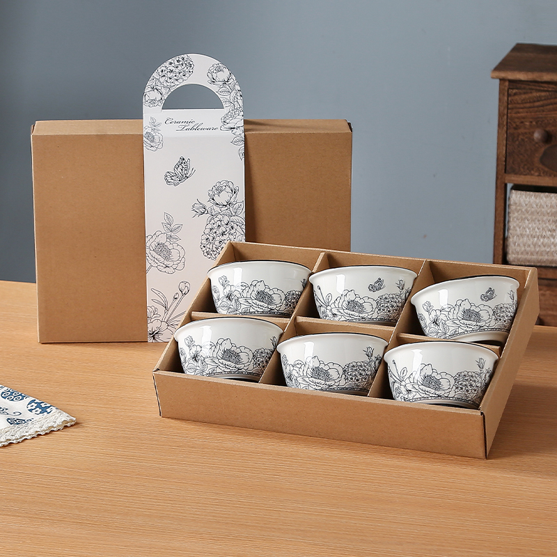 • 황백색 검정색 실 6그릇 6젓가락 선물상자