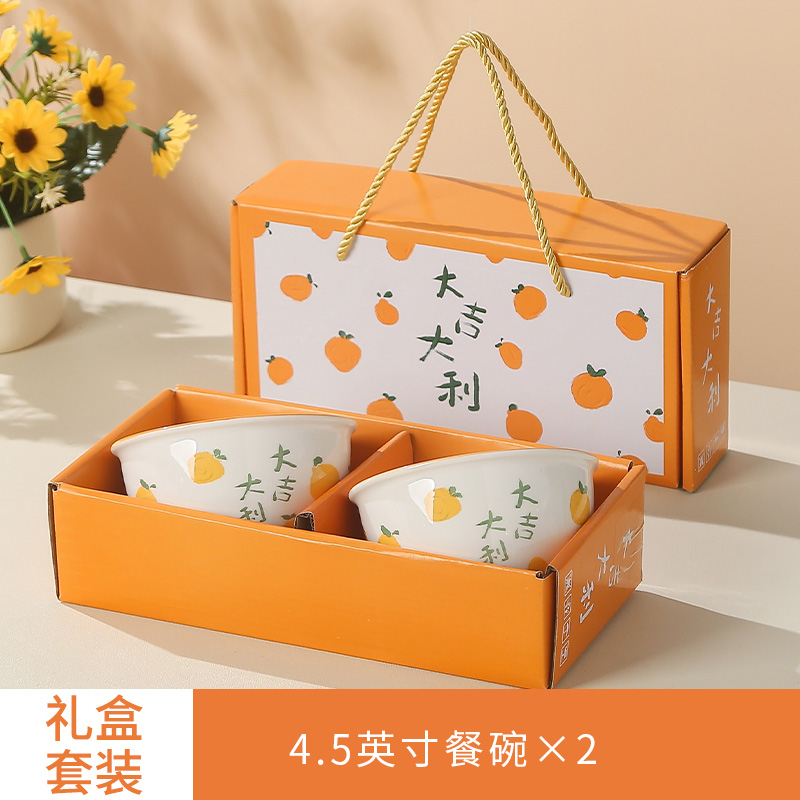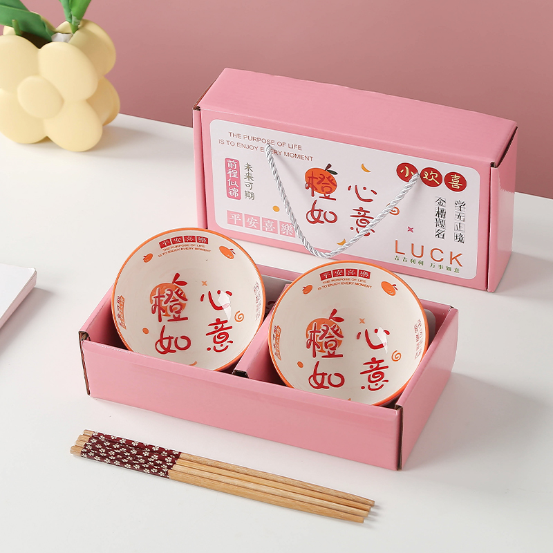 • 오렌지하트루이 그릇 2개 젓가락 2개 (핑크색 선물박스)