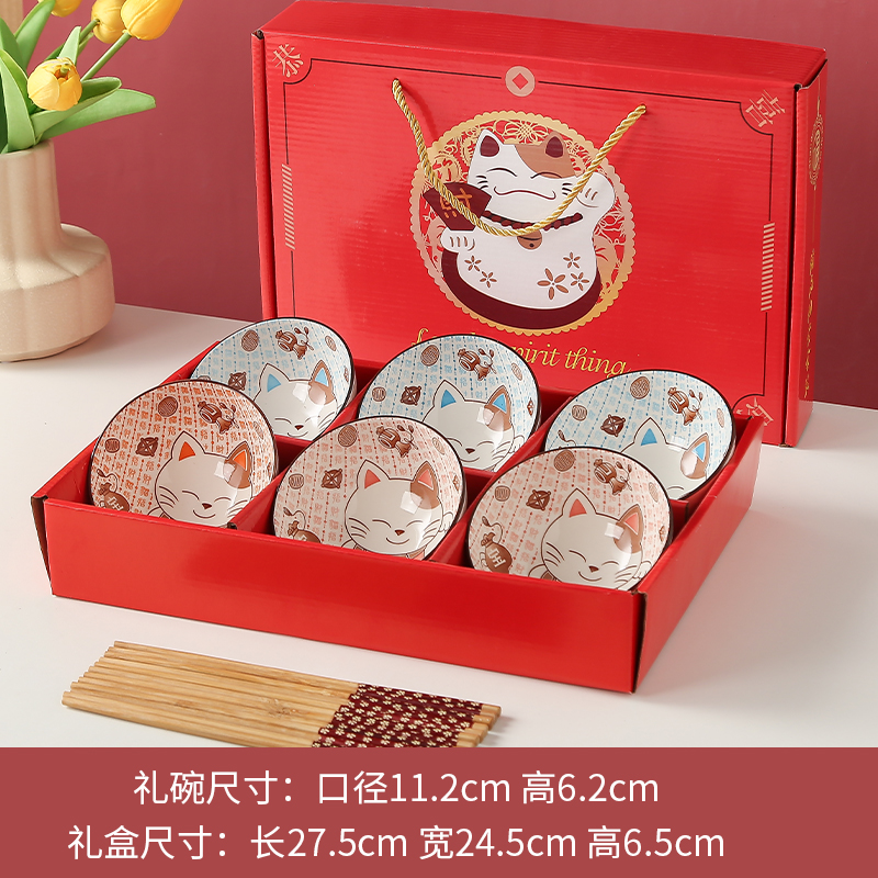 • 행운을 빌어요 그릇 6개 젓가락 6개(선물 상자)