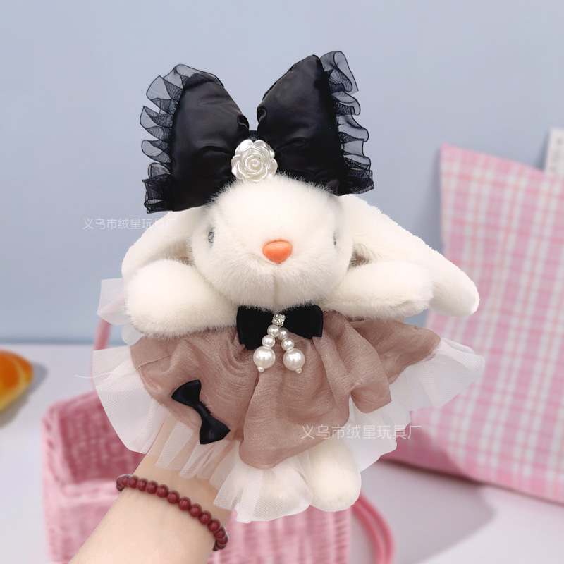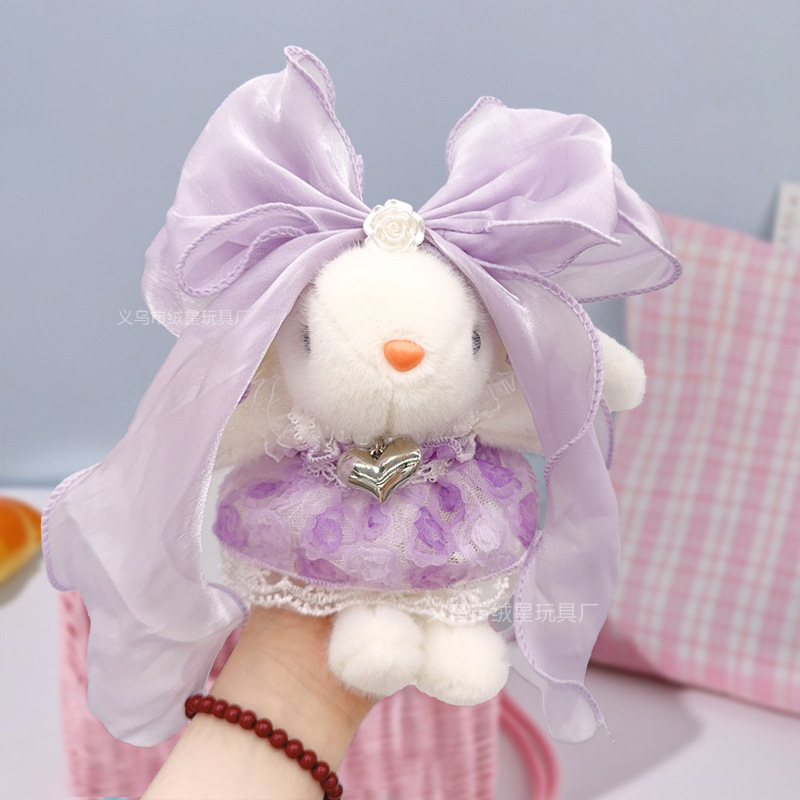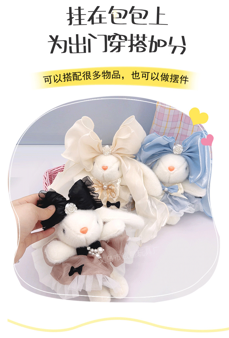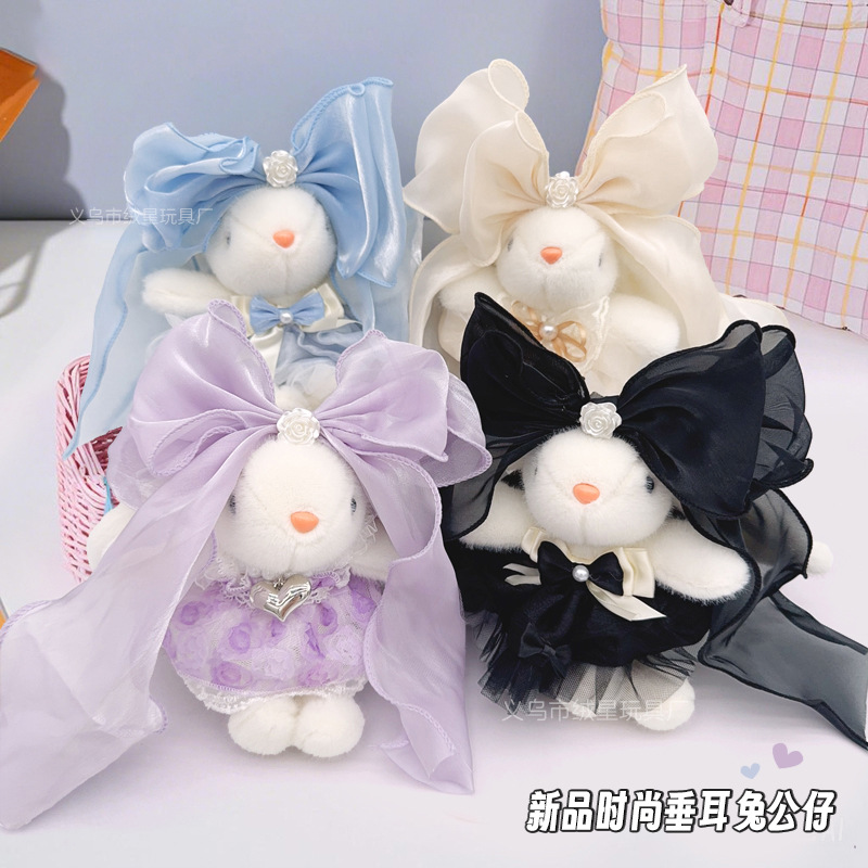 새로운 귀 매달려 토끼 봉제 인형 펜던트 봄과 여름 큰 활 메쉬 스커트 토끼 인형 휴대 전화 가방 교수형 액세서리