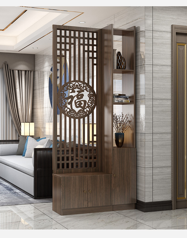 새로운 중국식 입구 스크린 파티션 캐비닛, 거실 입구 캐비닛, 신발장, 출입구에 직면한 원목으로 덮음 p^