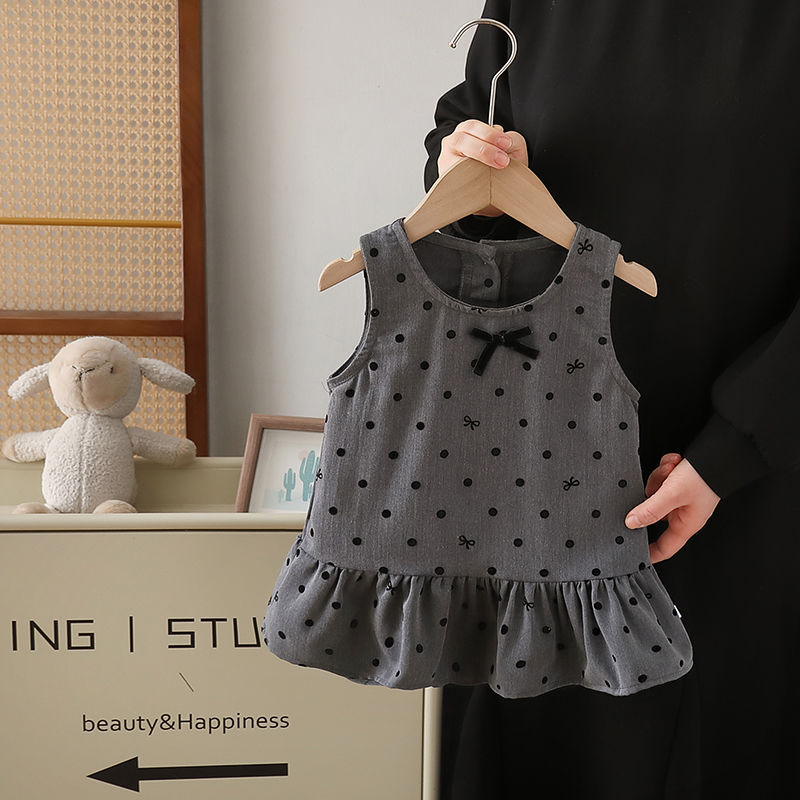 봄 아기 소녀 폴카 도트 조끼 드레스 유행 활 아기 조끼 드레스 봄과 여름 소녀 드레스 얇은스토어 가기