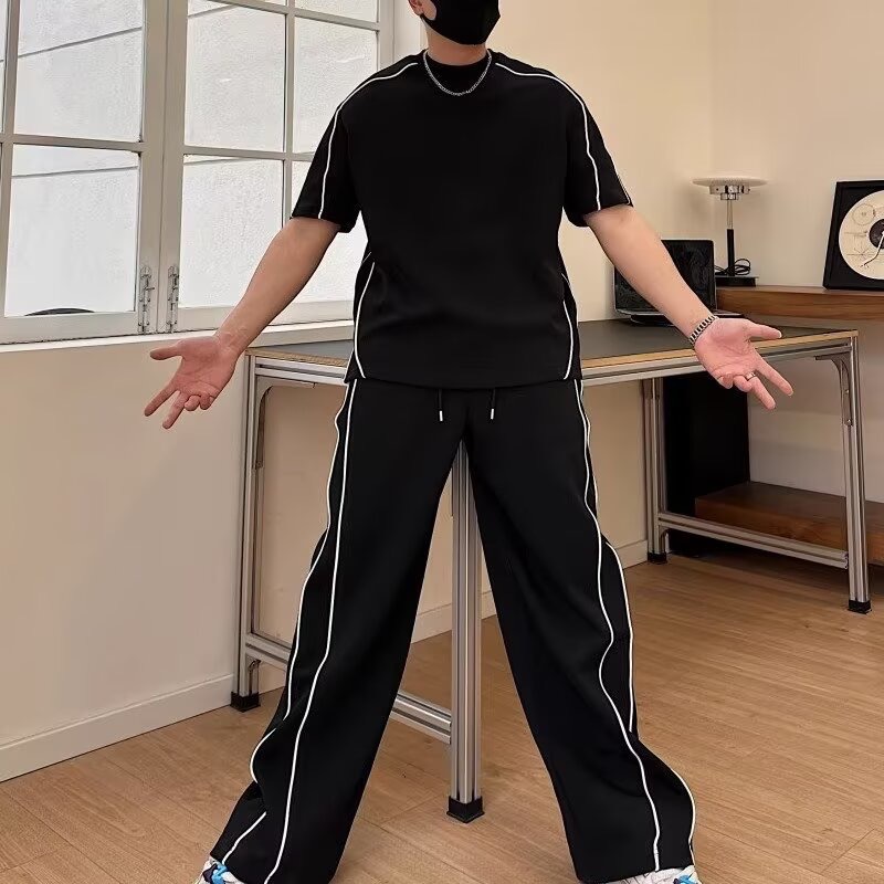 남성 캐주얼 반팔 티셔츠 세트 2025 여름 얇은 탑과 바지 트렌디하고 다재다능한 루즈한 남성용 투피스 세트 1