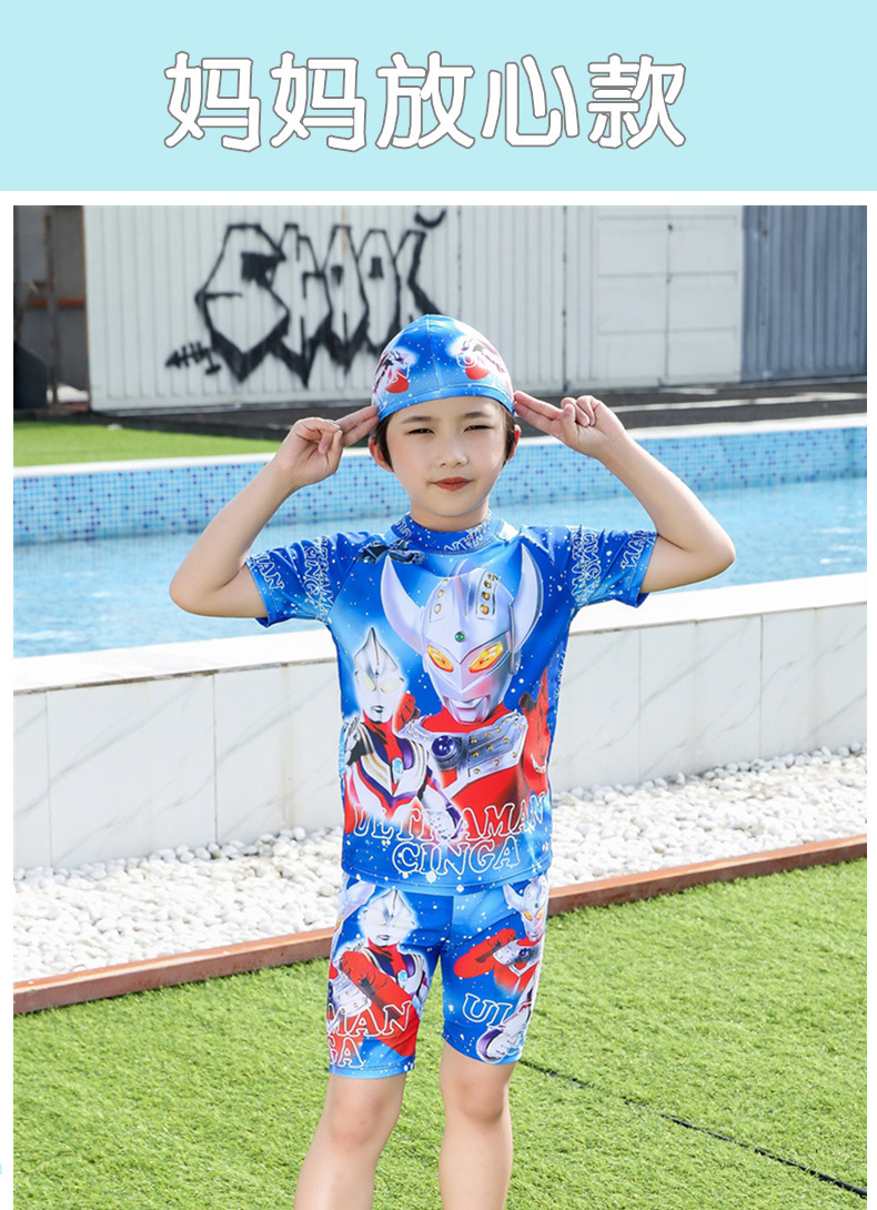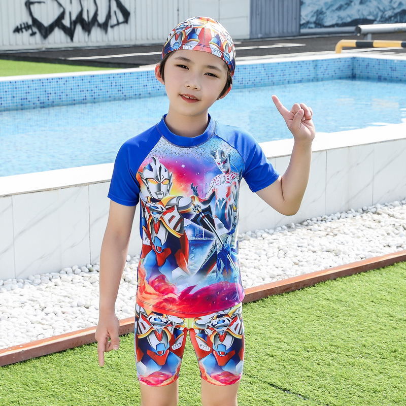 어린이 수영복 소년 분할 만화 학생 수영복 교육 세트 중견 어린이 반소매 빠른 건조 태양 보호 전문 수영복스토어 가기