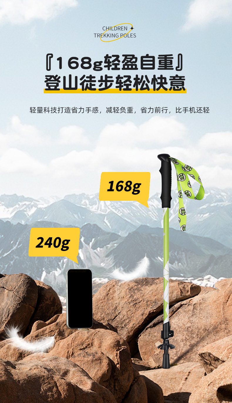 웃는 상어 야외 초경량 등반 스틱 어린이 워킹 스틱 미끄럼 방지 목발 비 탄소 다기능 등산 세트