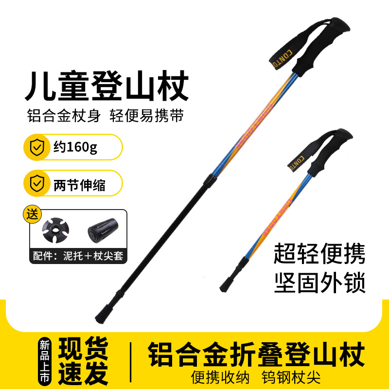 웃는 상어 야외 초경량 등반 스틱 어린이 워킹 스틱 미끄럼 방지 목발 비 탄소 다기능 등산 세트스토어 가기