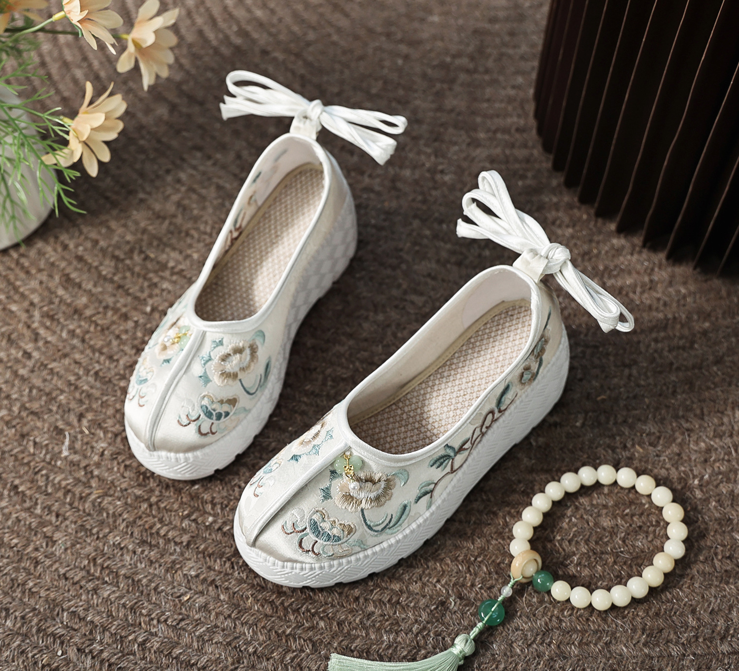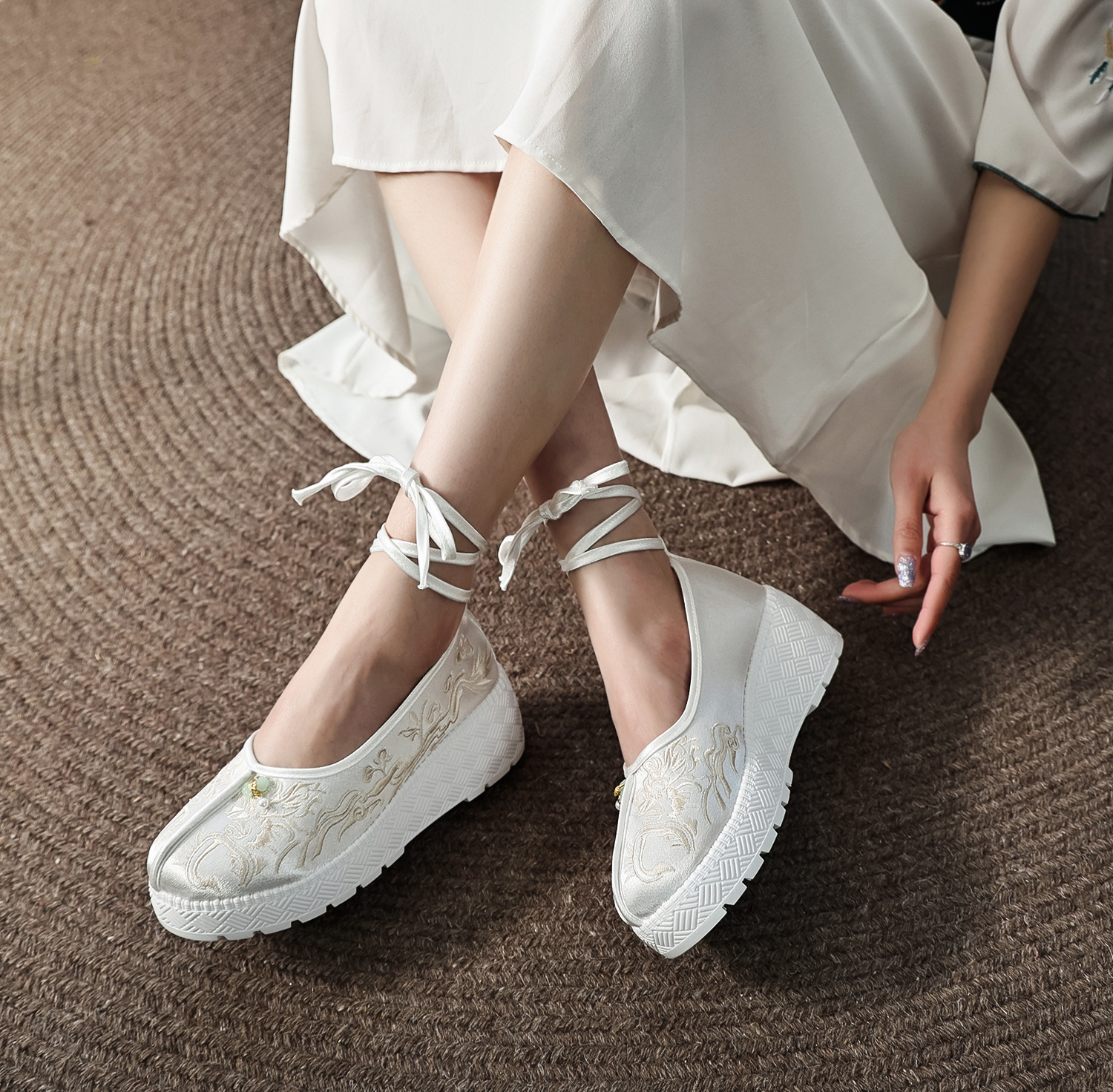 두꺼운 밑창 봄과 여름 새로운 중국 스타일 한푸 신발 여성의 고대 의상 골동품 자수 신발 한푸 단층 신발
