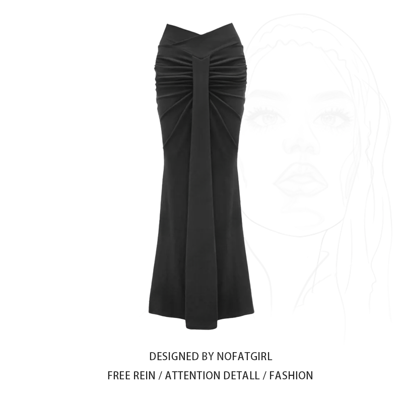 빅사이즈 플러스 사이즈 여성용 주름 피쉬테일 스커트 가을 겨울 허리 슬림핏 하이웨이스트 롱 스커트 고급스러운 슬림핏스토어 가기