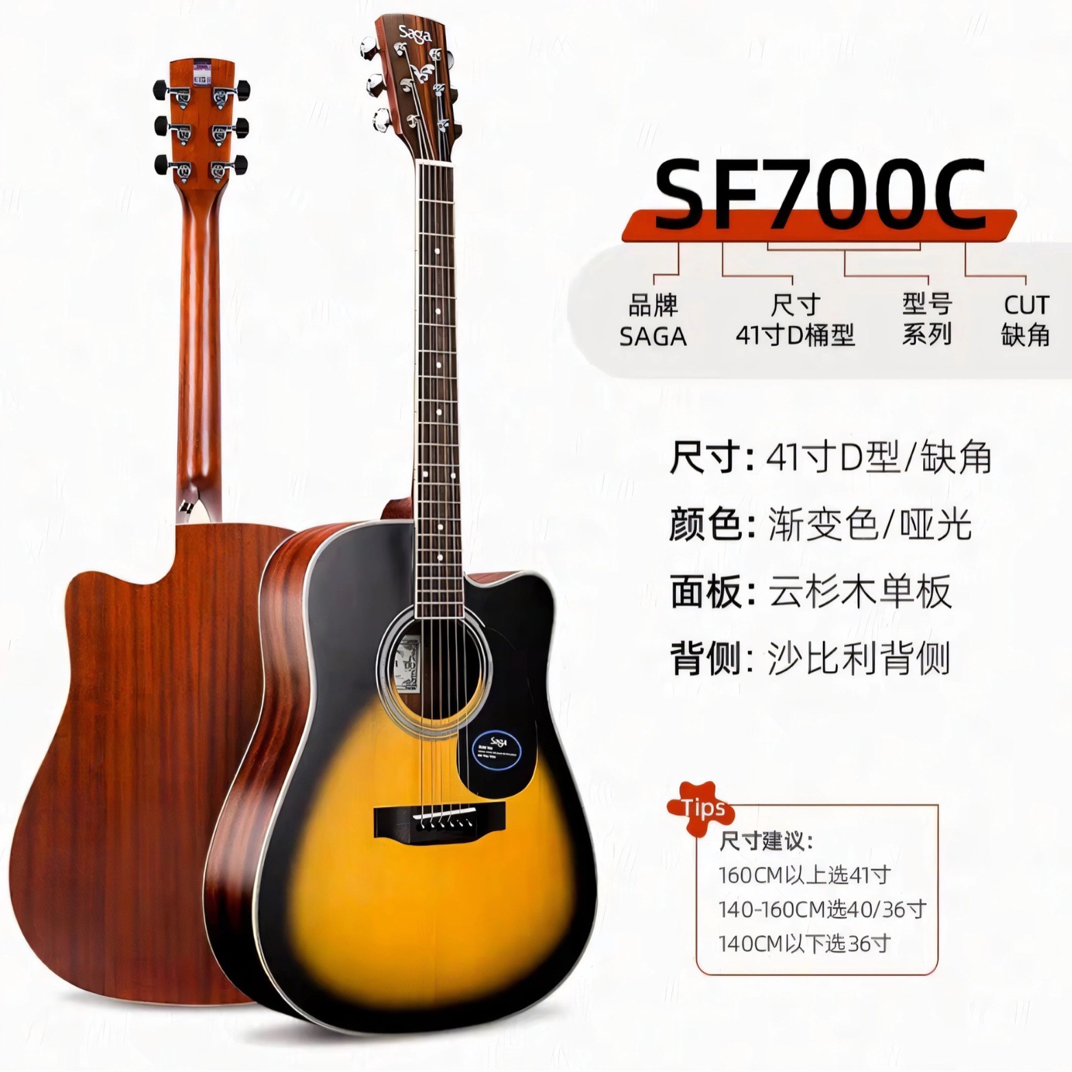 SAGAsf700pro SAGA 초보자 남성과 여성 정품 업그레이드 포크 일렉트릭 박스 스프루스 베니어 어쿠스틱 기타 41스토어 가기