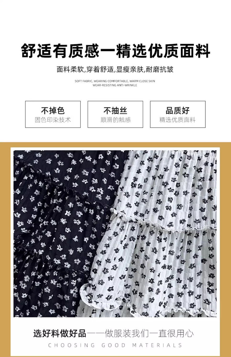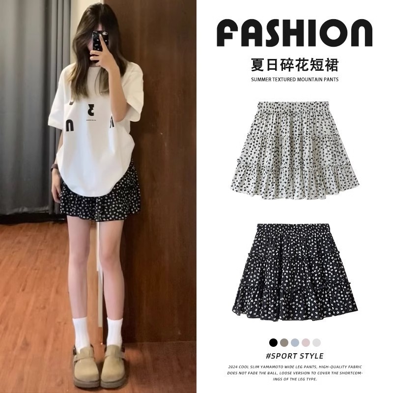 한국 스타일 검은 꽃 치마 여자 여름 2024 새로운 스타일 케이크 스커트 작은 캐릭터 스커트 짧은 치마스토어 가기