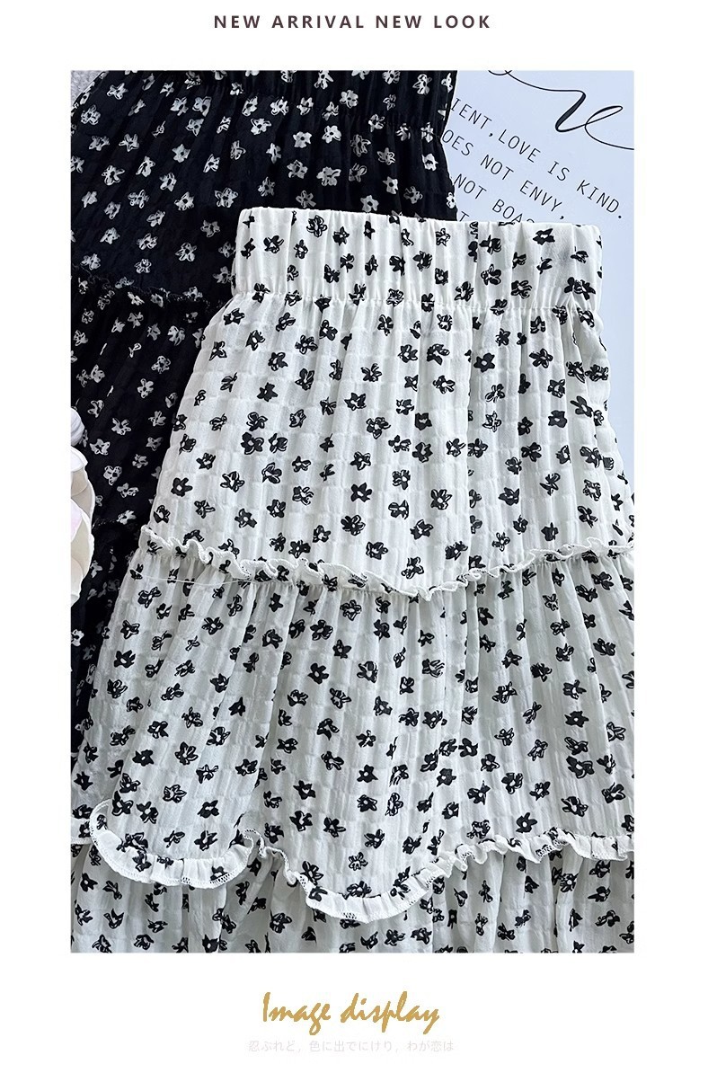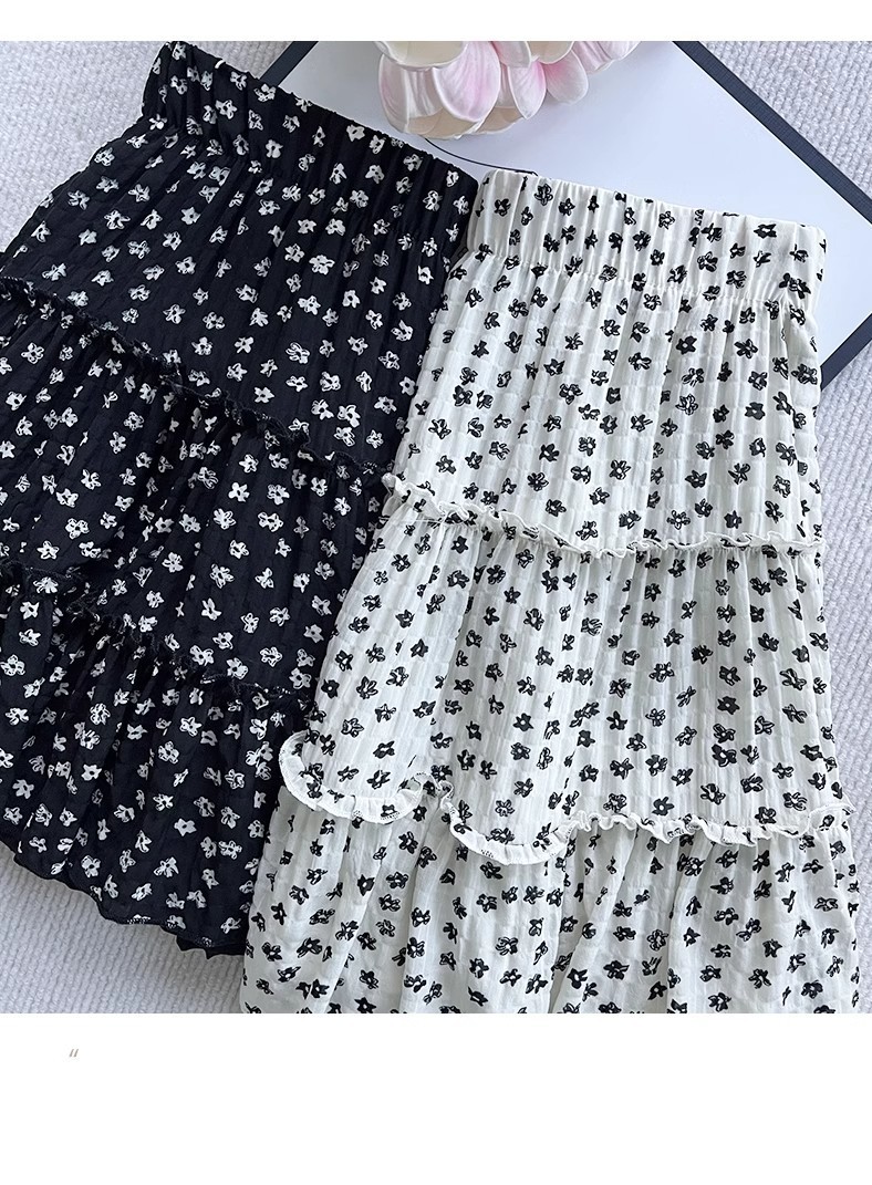 한국 스타일 검은 꽃 치마 여자 여름 2024 새로운 스타일 케이크 스커트 작은 캐릭터 스커트 짧은 치마