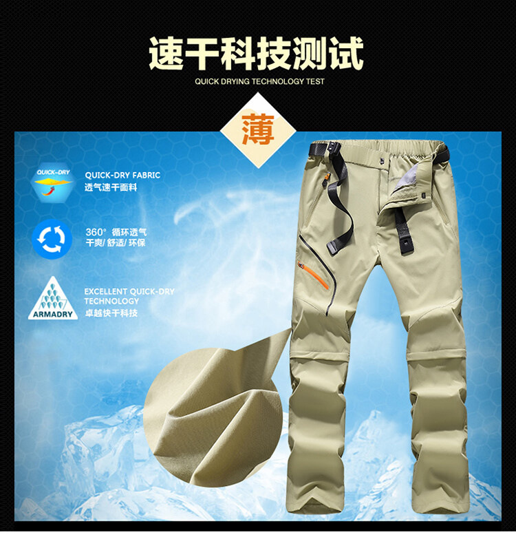남성용 야외 스포츠 속건성 바지, 탈착식 신축성 등산 바지, 여성용 자외선 차단, 통기성 및 내마모성 탈착식 바지 도매스토어 가기