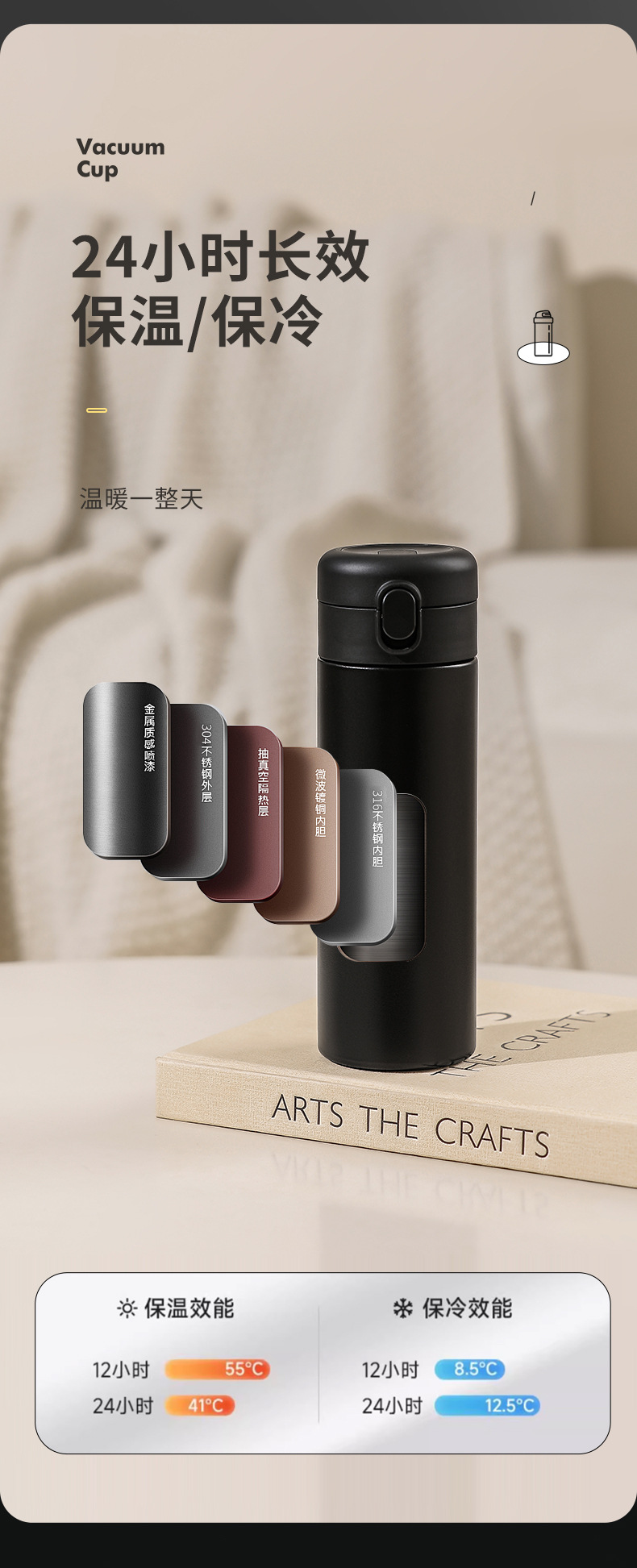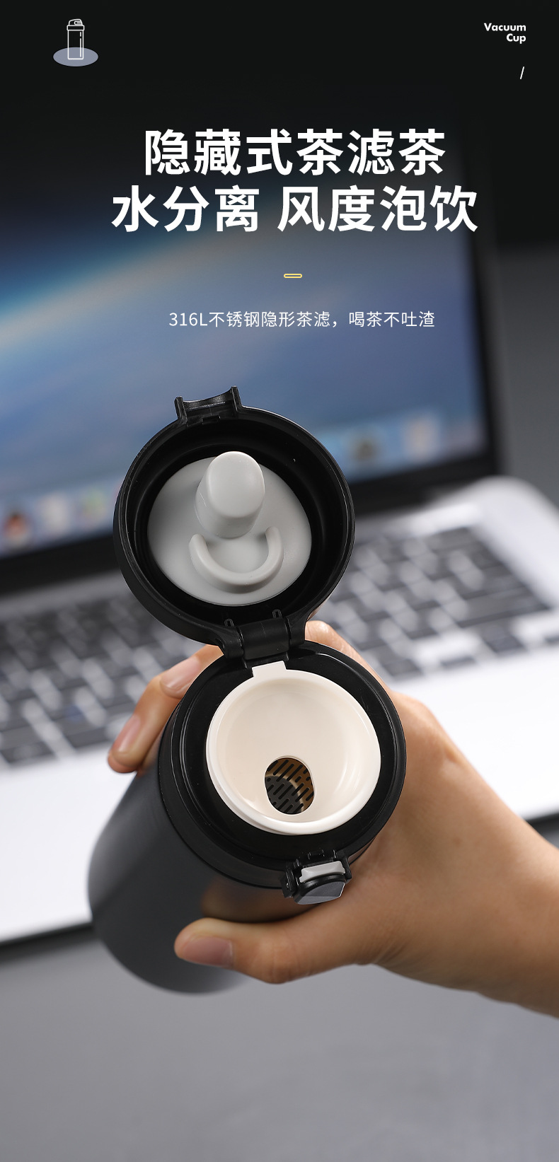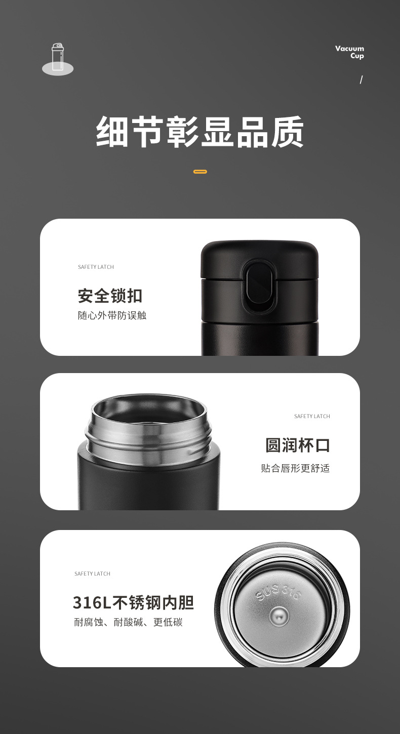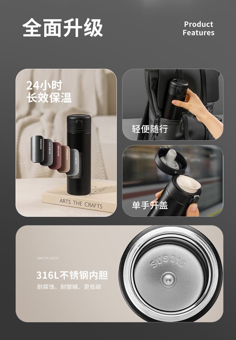 새로운 316L 바운스 컵 가벼운 럭셔리 편리한 직접 음료 컵 고급 비즈니스 스테인레스 스틸 진공 절연 자동차 컵