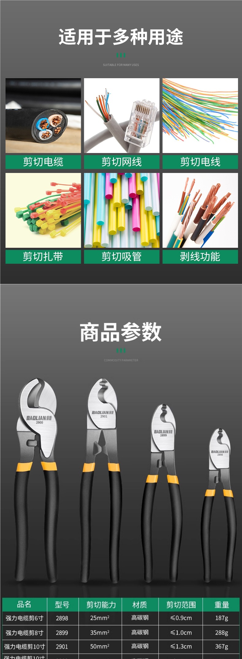 • 산업용 등급의 ​​강력한 케이블 커터 6inch