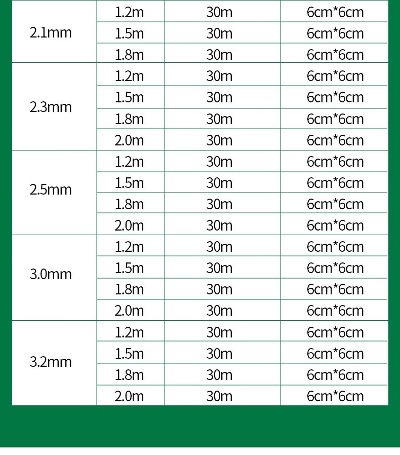VLEN FWL6 철 와이어 울타리 보호 그물 2.5mm 1.5 높이 30.6m cm 구멍 녹색 1 롤 팩스토어 가기
