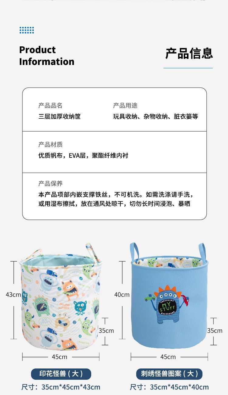 만화 작은 괴물 장난감 보관 바구니 어린이 옷 장난감 보관 상자 대용량 보관 버킷 더러운 옷 바구니