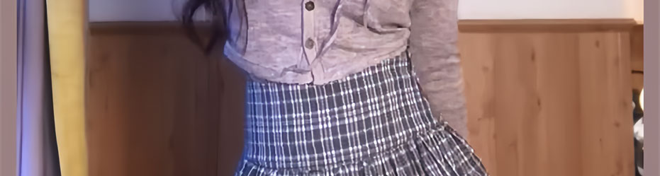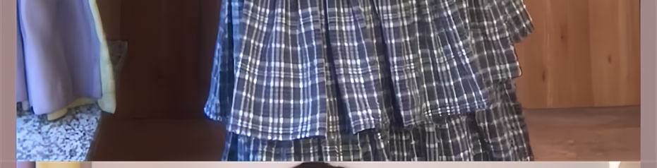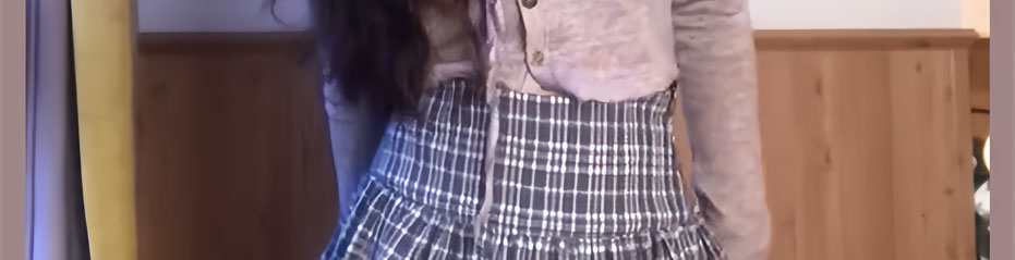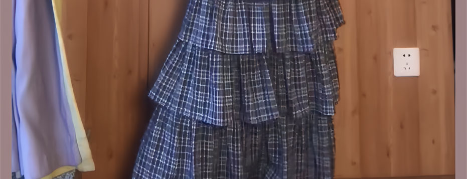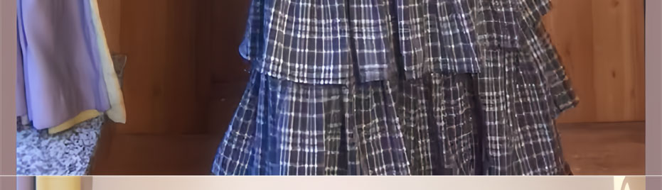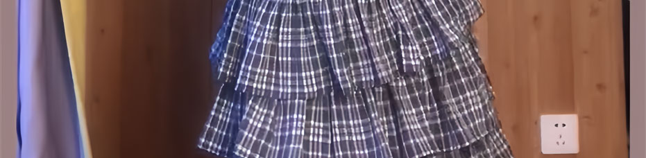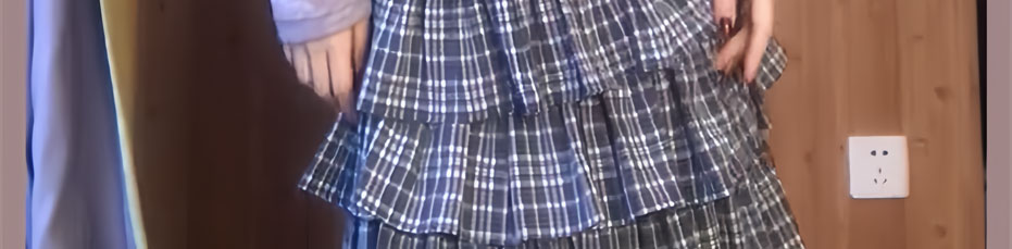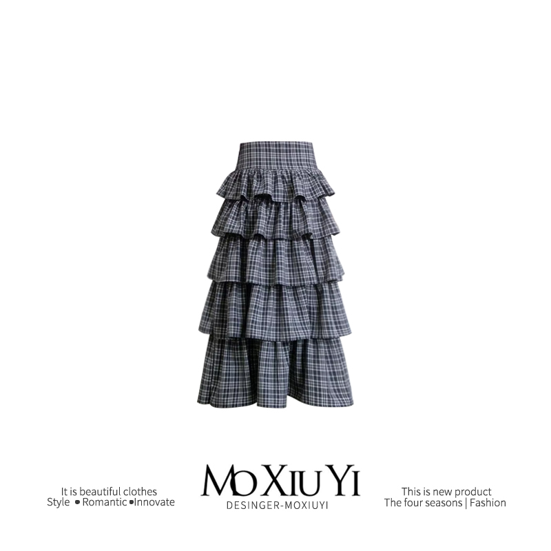 MoXiuYi [Ready Stock] 여성용 사계절 복고풍 헤비듀티 블루 그레이 체크 무늬 퍼프 케이크 스커트 롱 스커트