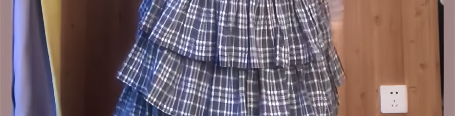 MoXiuYi [Ready Stock] 여성용 사계절 복고풍 헤비듀티 블루 그레이 체크 무늬 퍼프 케이크 스커트 롱 스커트스토어 가기