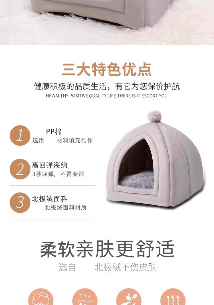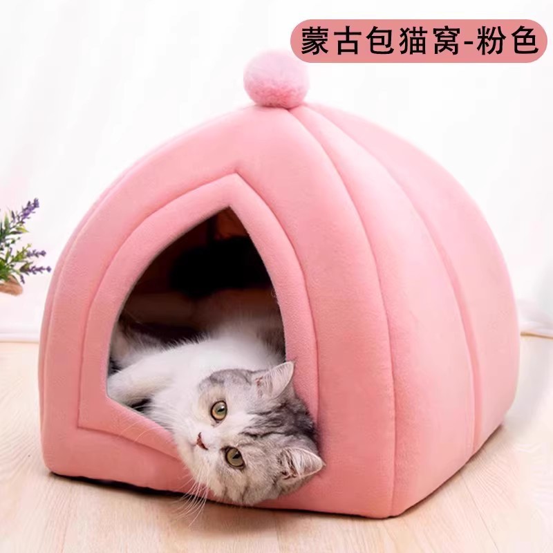 몽골리안 돔 애완동물 둥지, 반밀폐형 고양이 둥지, 두껍고 따뜻한 고양이 집, 세탁 가능한 사계절 소형견 침대