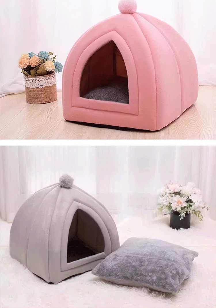 몽골리안 돔 애완동물 둥지, 반밀폐형 고양이 둥지, 두껍고 따뜻한 고양이 집, 세탁 가능한 사계절 소형견 침대스토어 가기